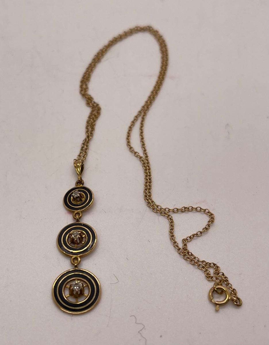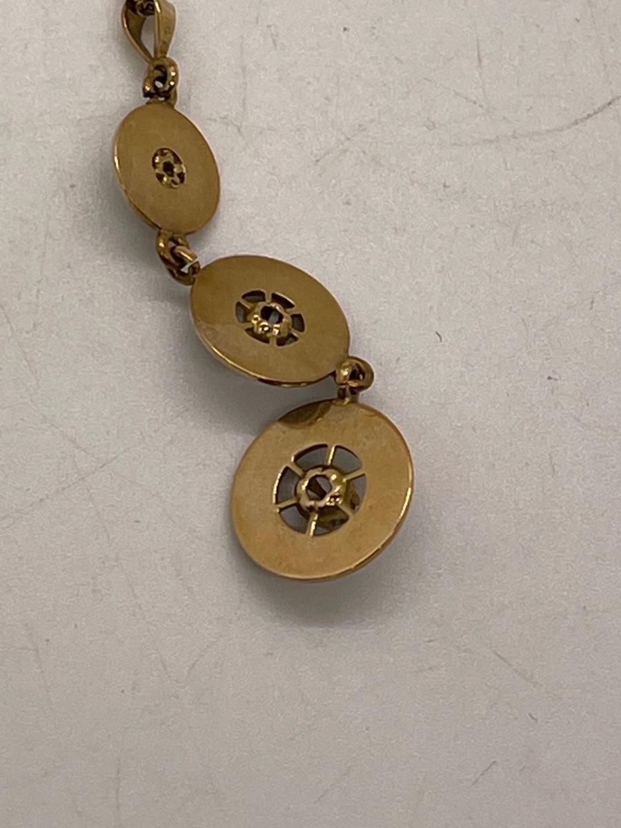 14K Yellow Gold Necklace with drop Pendant - 3 circles with 1/4 ct. diamonds