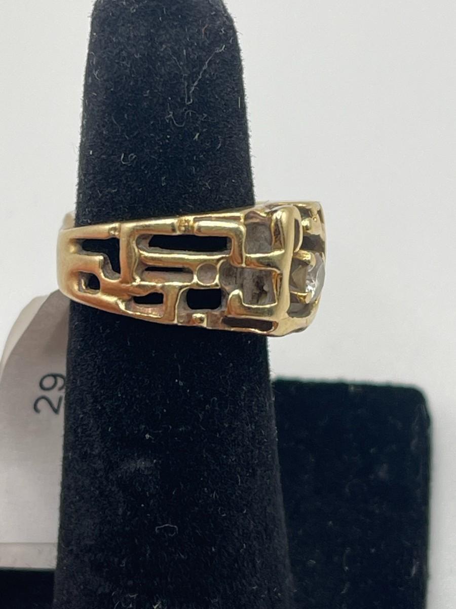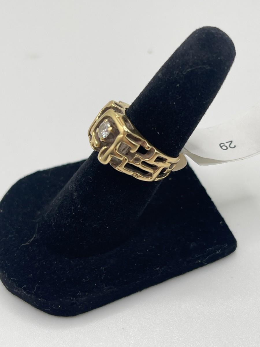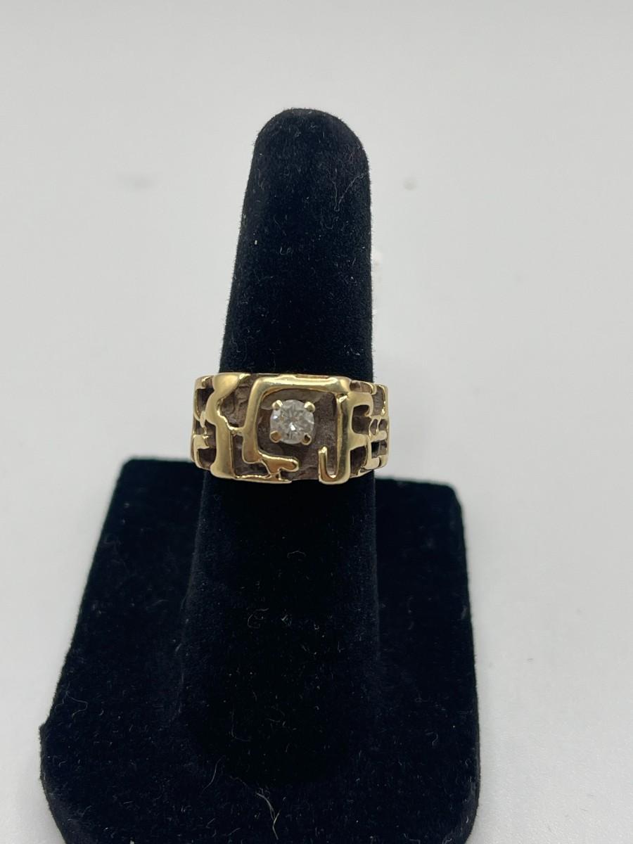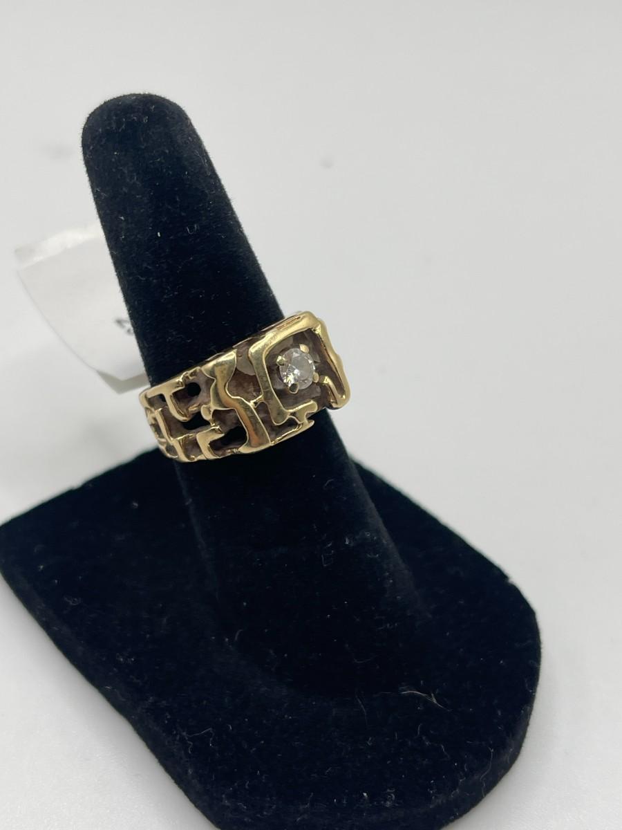 14K Yellow Gold Nugget Ring with Central Diamond. .20 ct, I-J, SI1. Size 4.25.