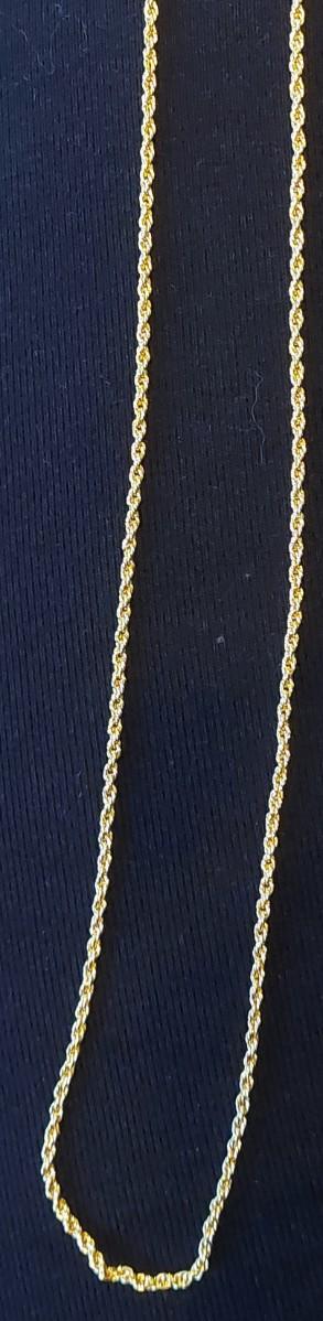 14k Yellow Gold Solid Rope Chain Necklace with Lobster Claw Clasp 2 mm 20 Inch