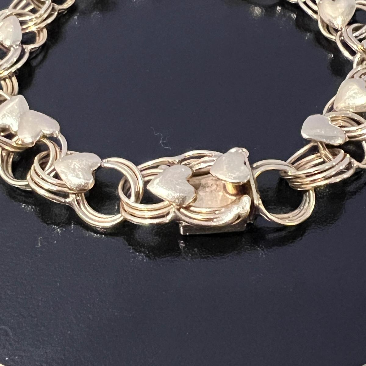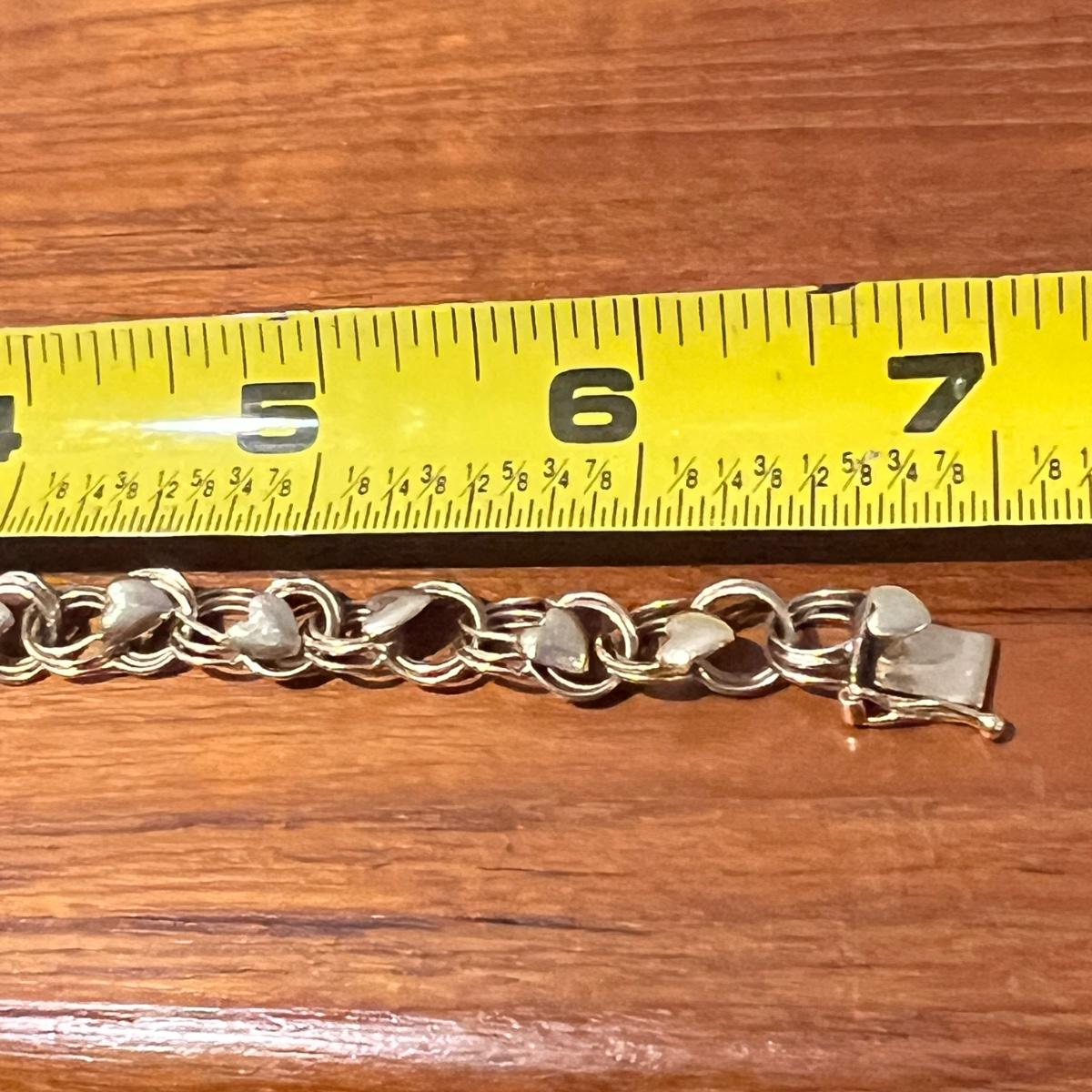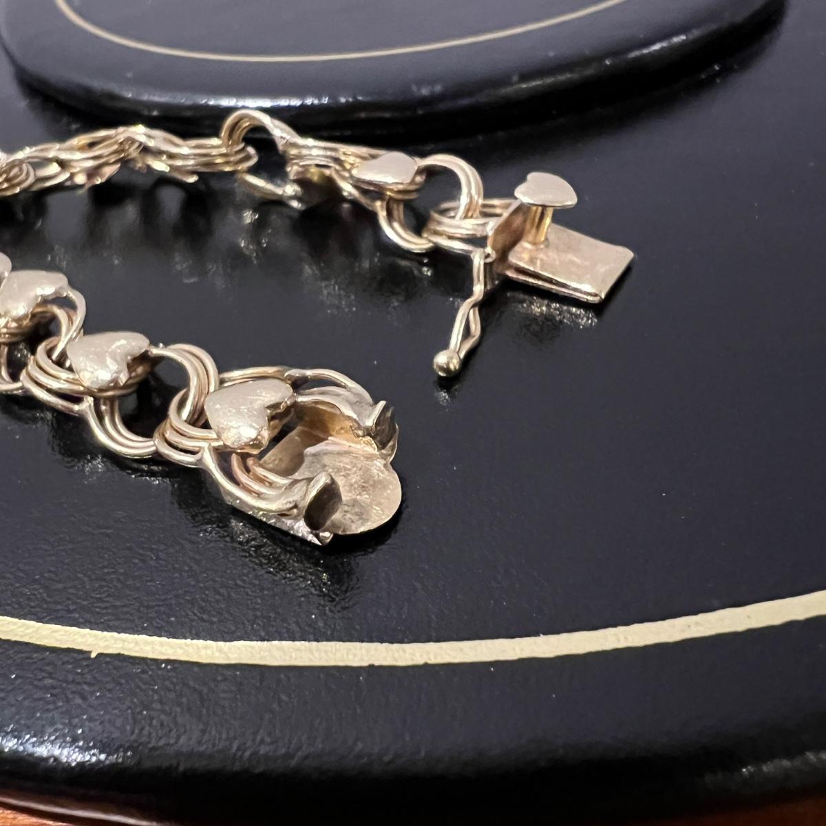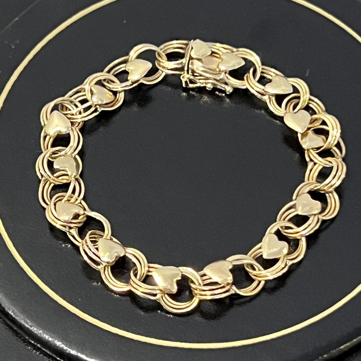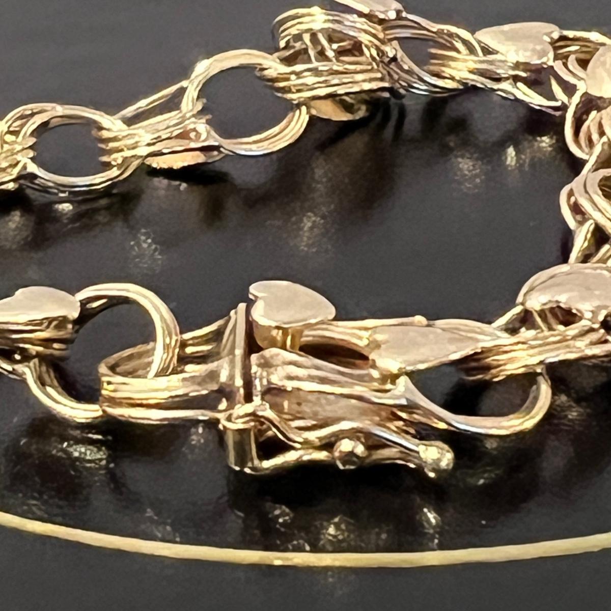 14k Yellow Gold Triple Link Chain Heart Charm Bracelet