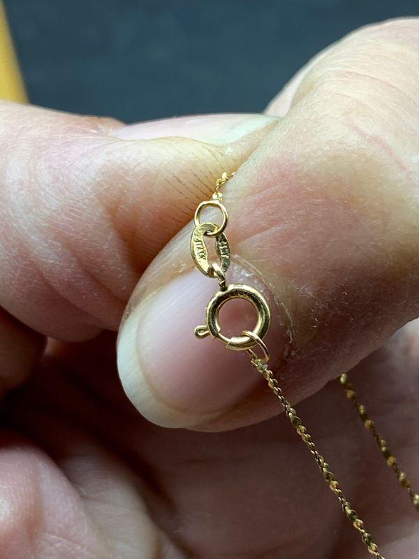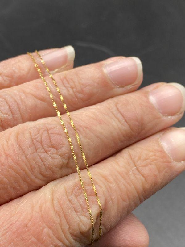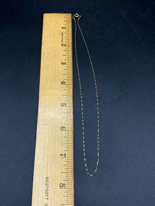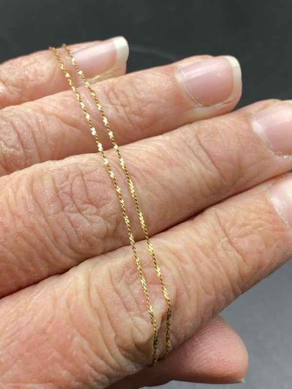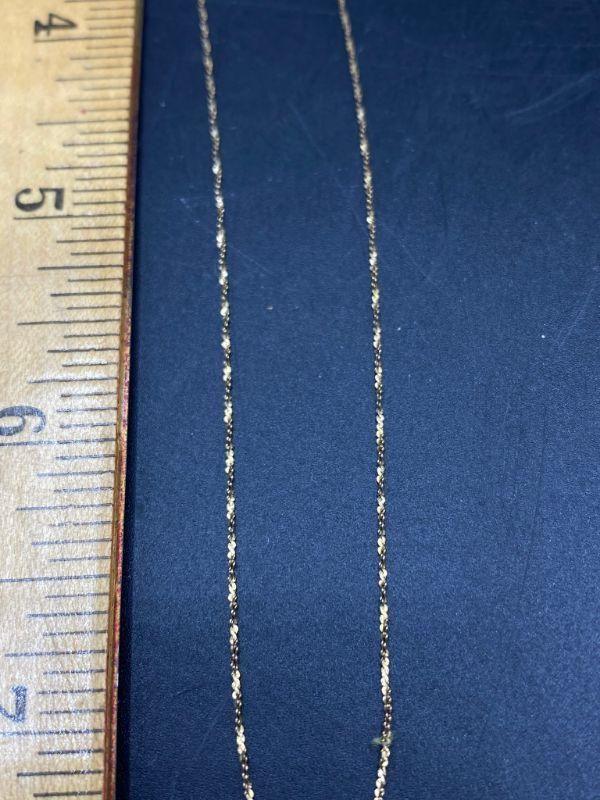 14k yellow gold necklace. Fine twisted link chain. .58g tw. About 7.5" length.