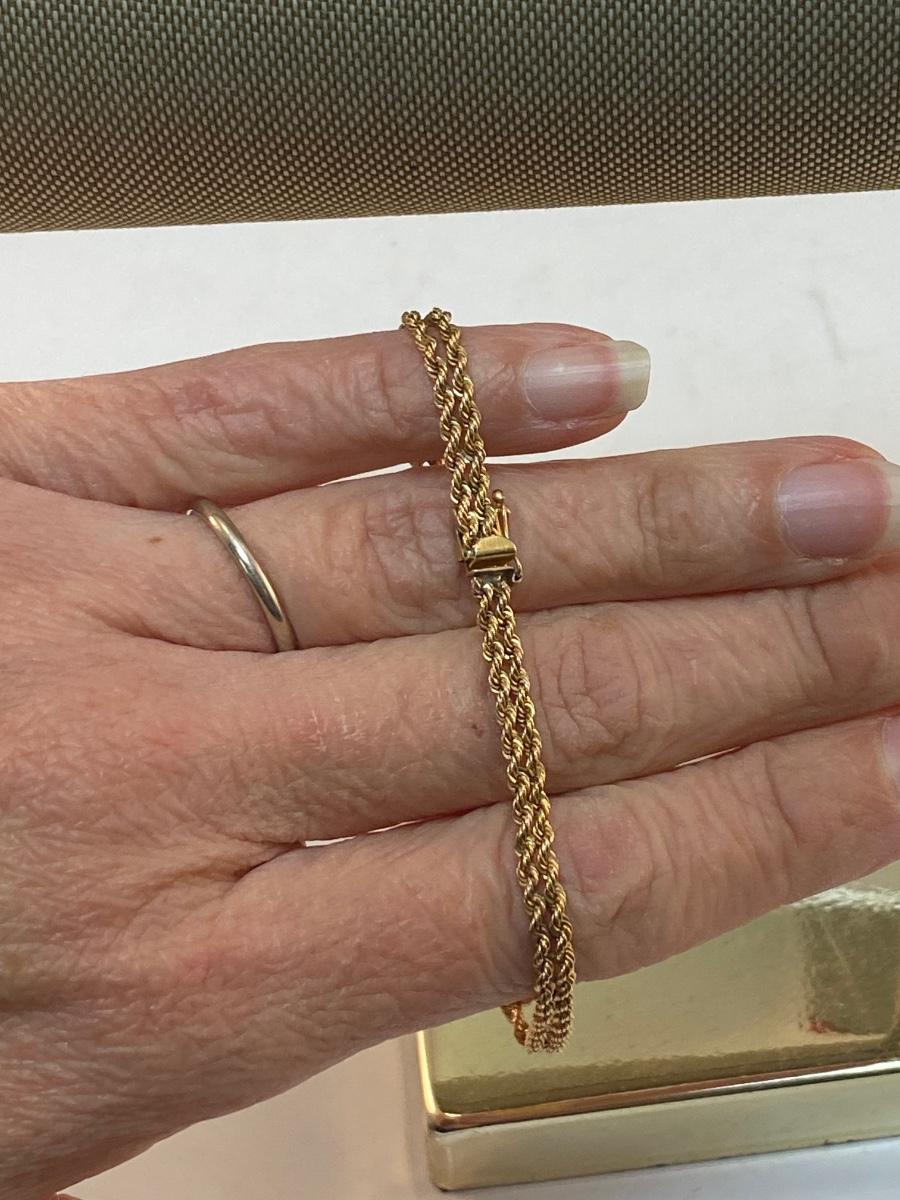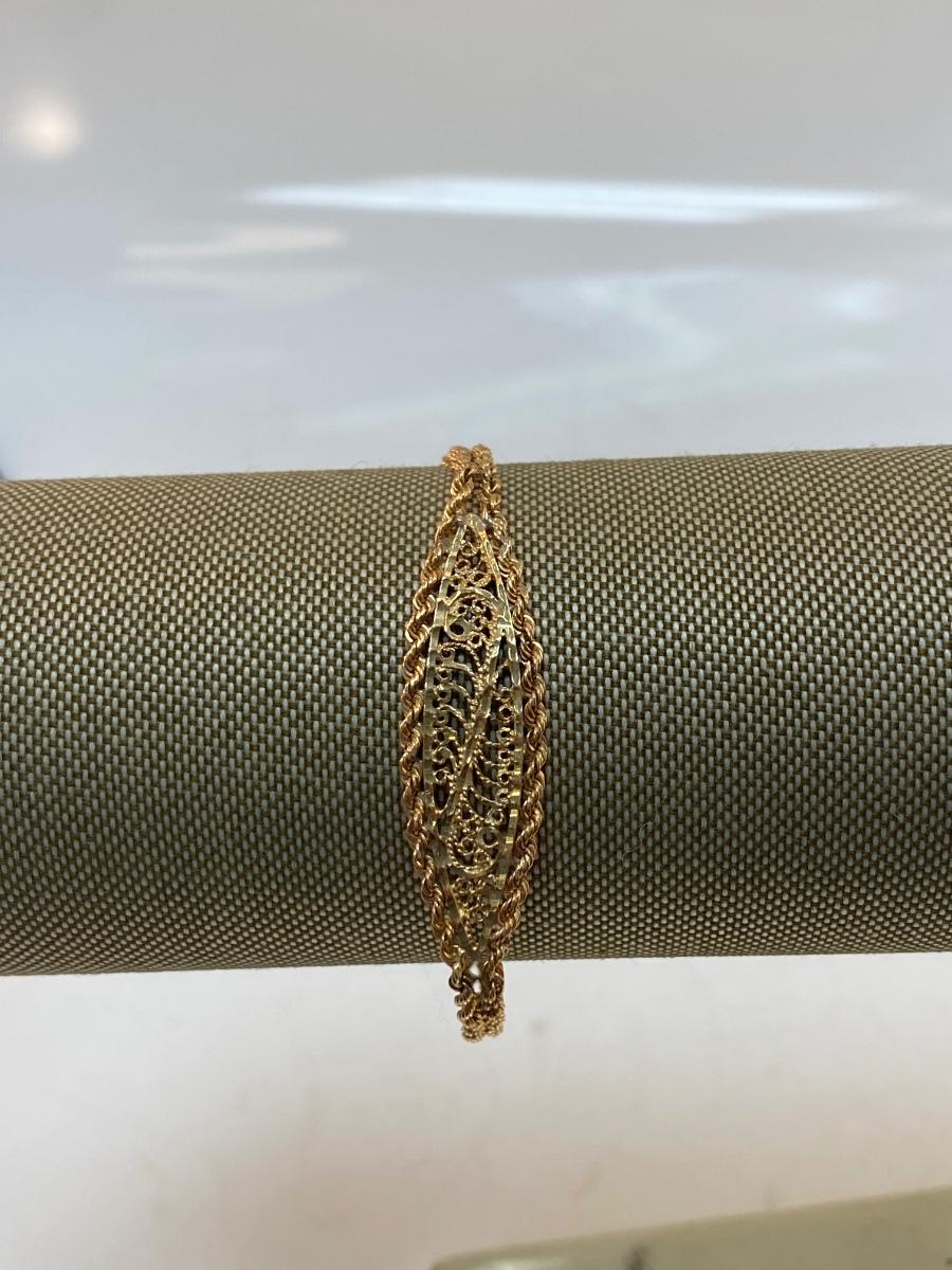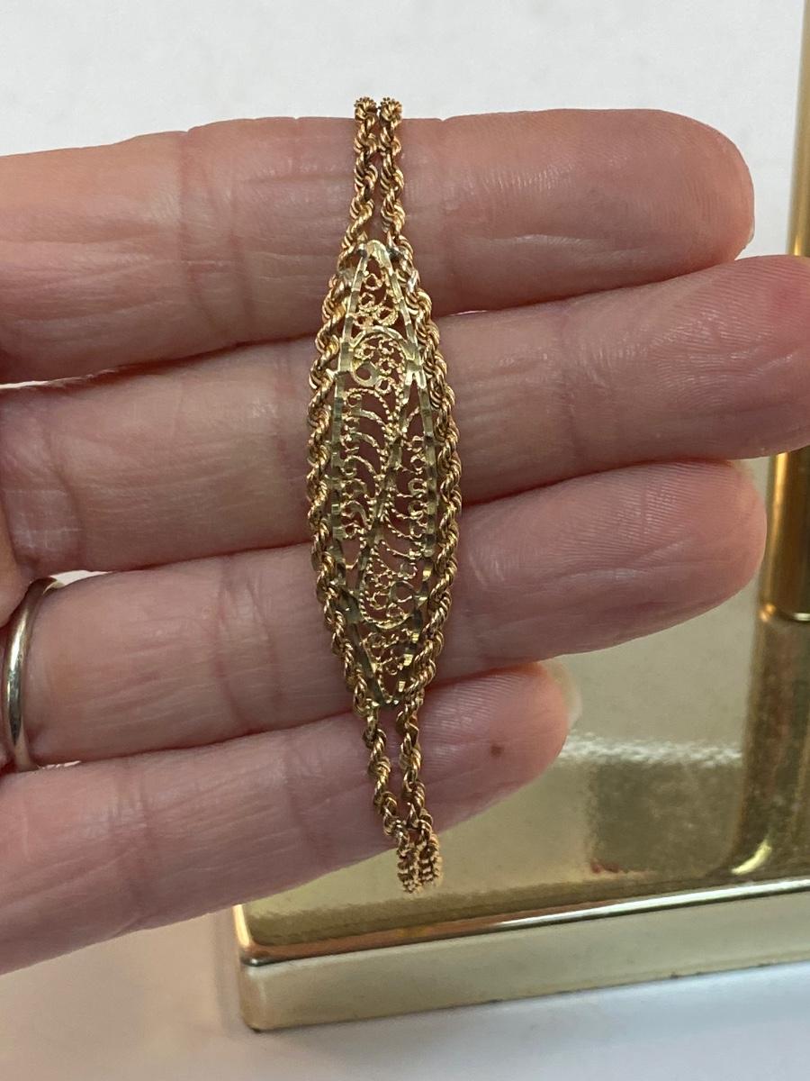 14k Yellow Gold Twisted Link Chain with Filigree Center Work Bracelet