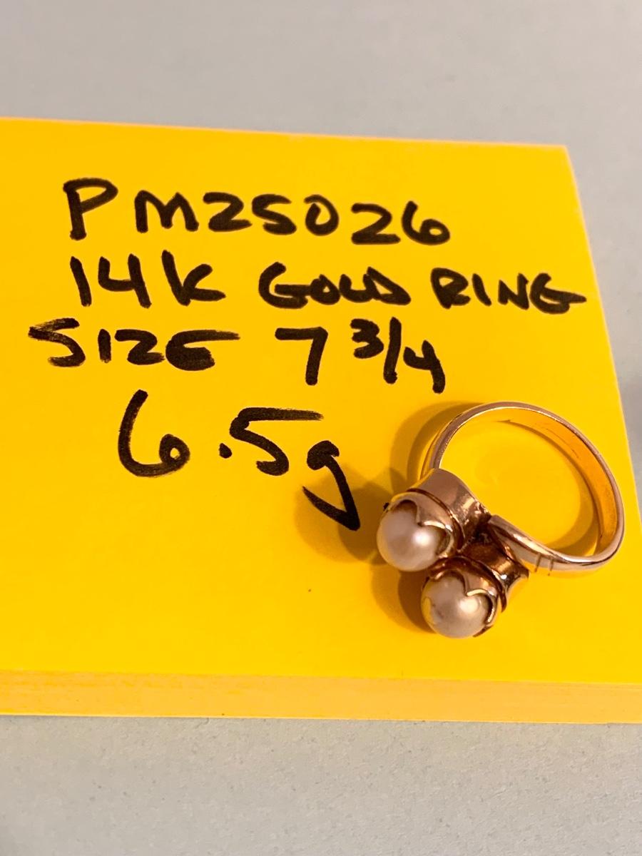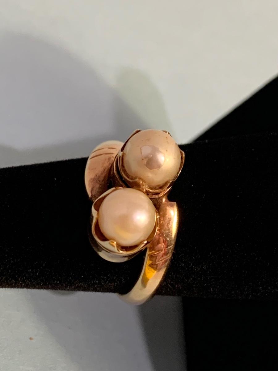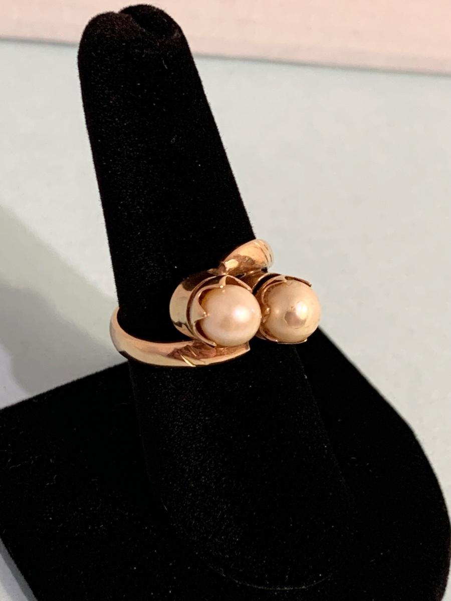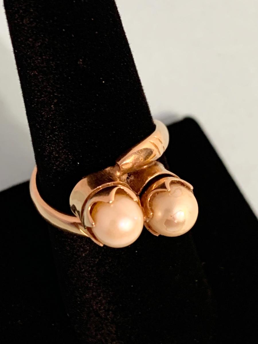 14k Yellow Gold w/ Inset Pearls Estate Ring - Size approx. 8 ~6.5 grams