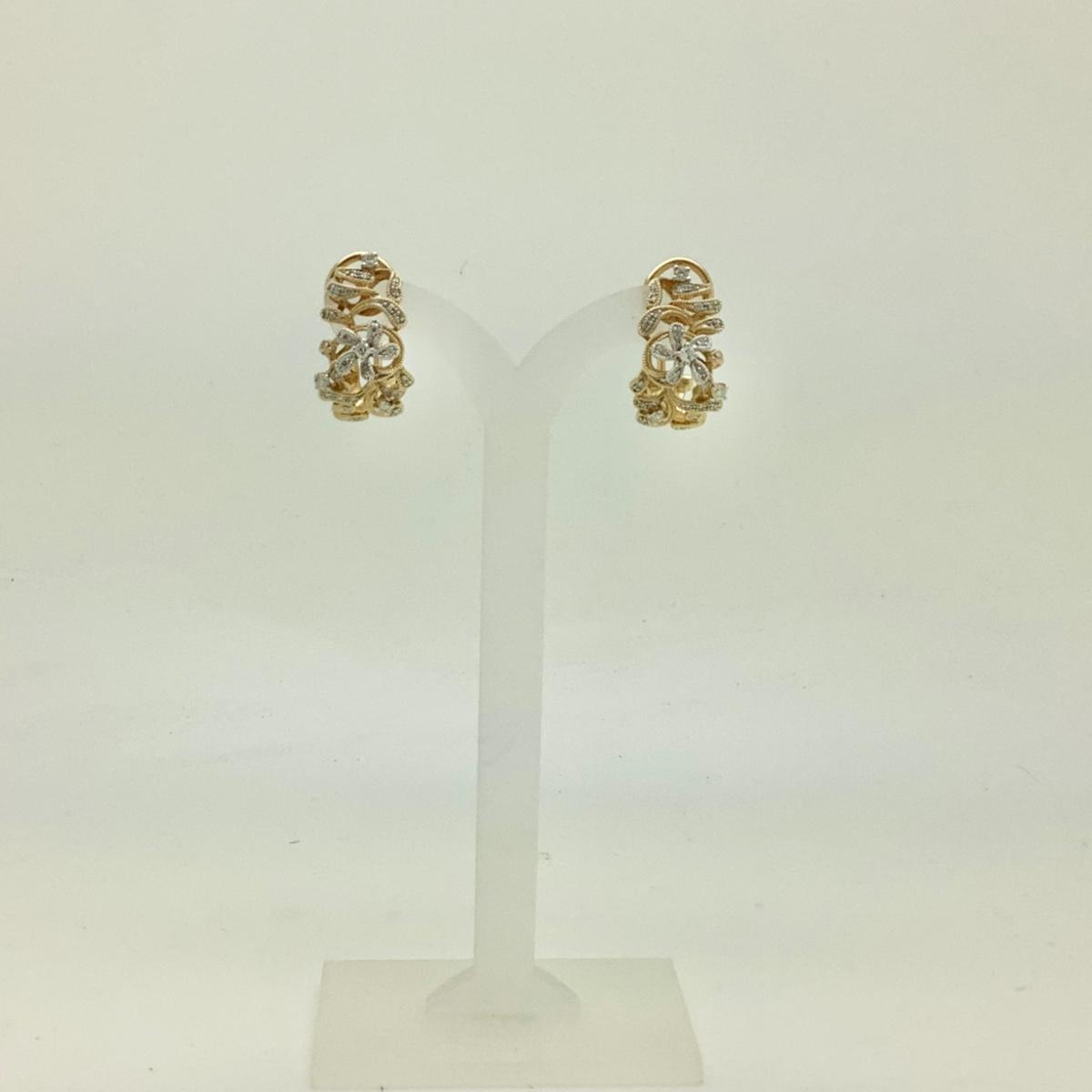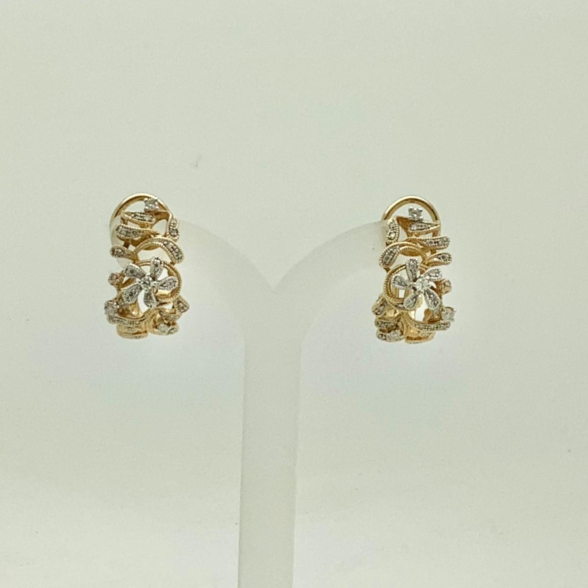 #8268 14K Yellow & White Gold EFFY Floral Diamond Hoop Easrrings