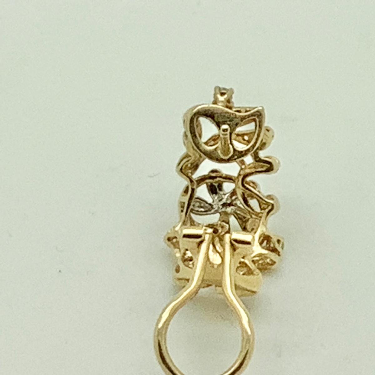 14k yellow & white gold EFFY open floral design post/lever back earrings with 8 round full cut diamonds and 52 round single cut diamonds weighing approx .75ct total. Approx 3/4" long x 7/16" wide, weighing 6.6gr.