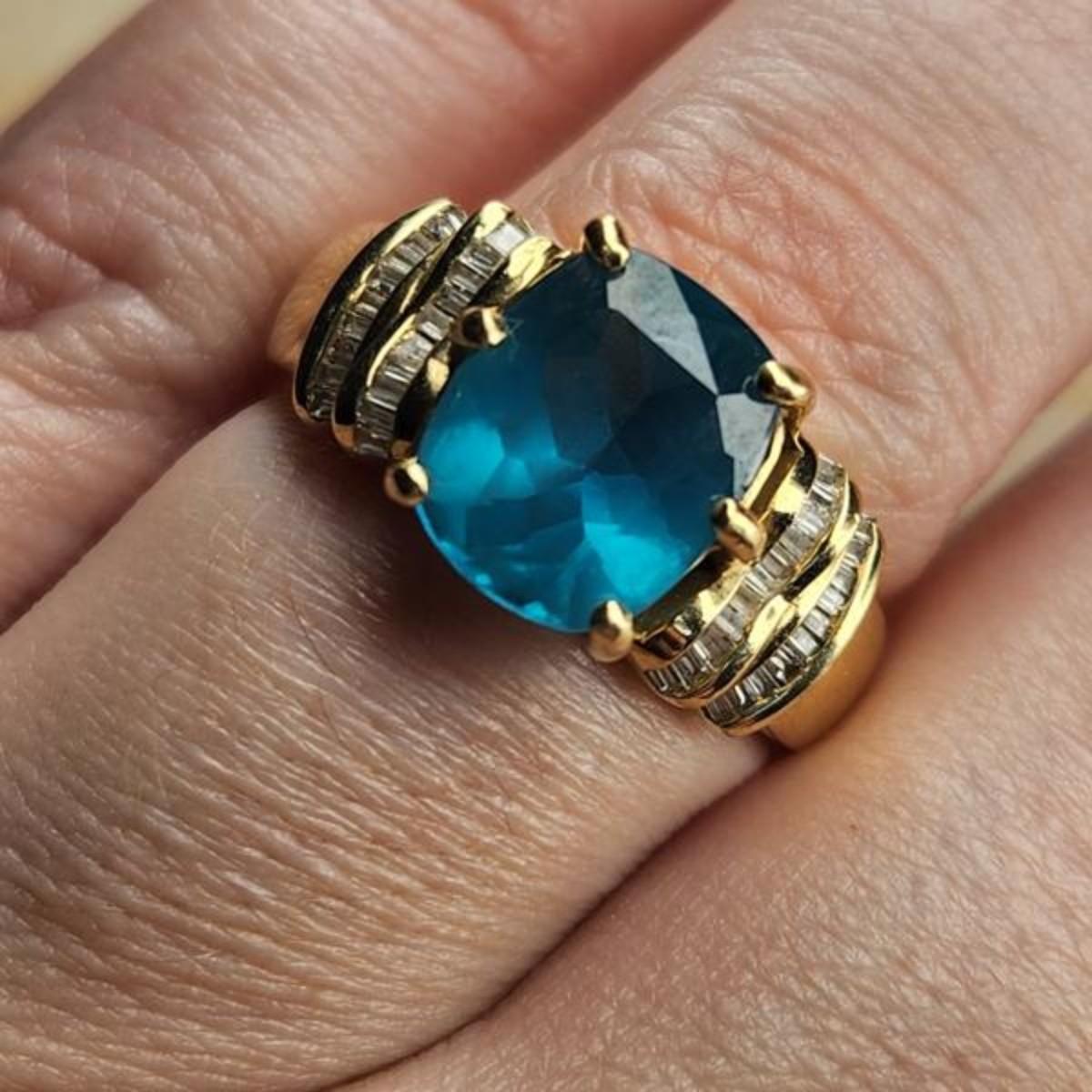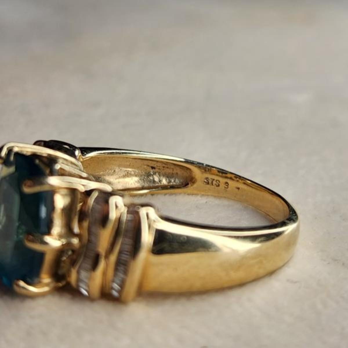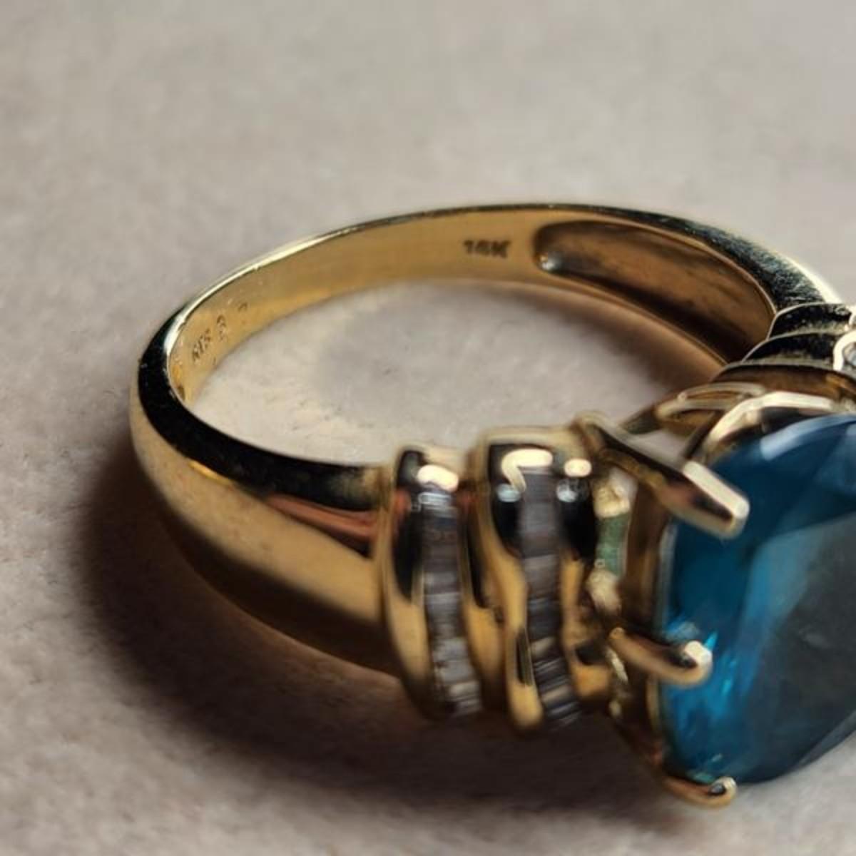 14k Yelow Gold Blue Topaz Diamond Ring Size 9.25