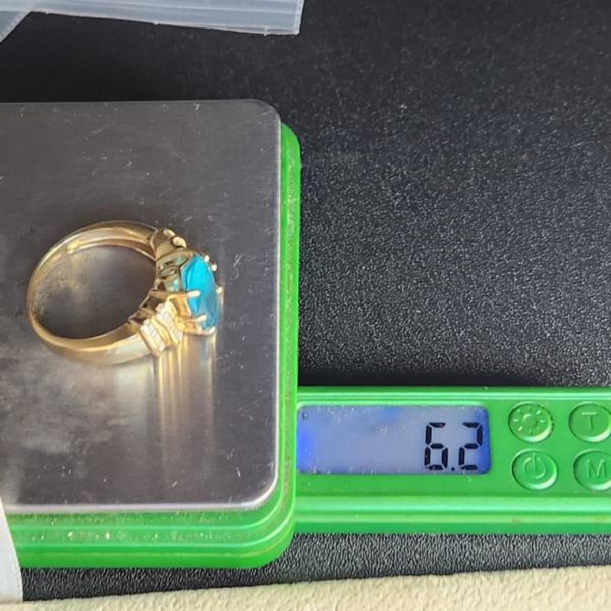 14k Yelow Gold Blue Topaz Diamond Ring Size 9.25