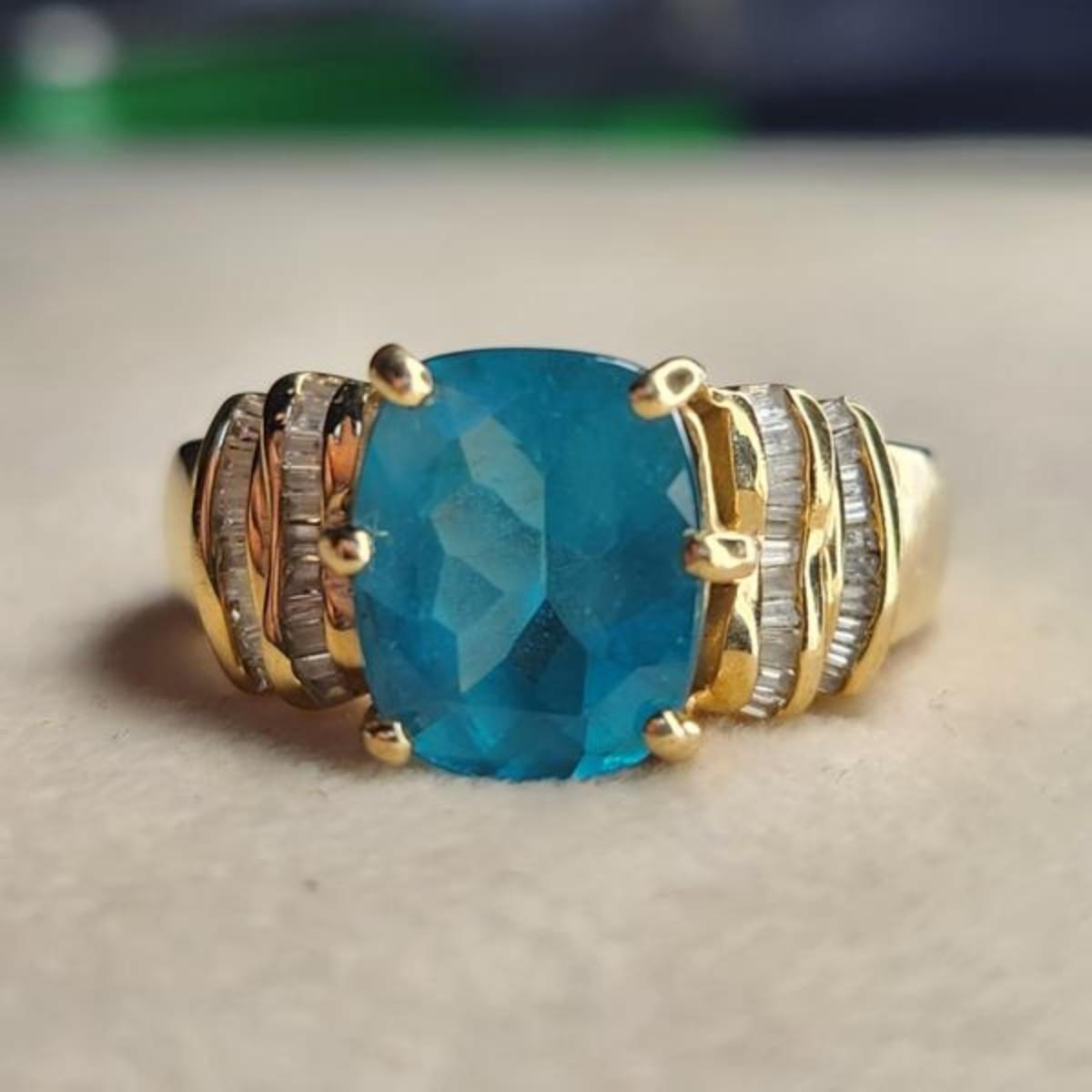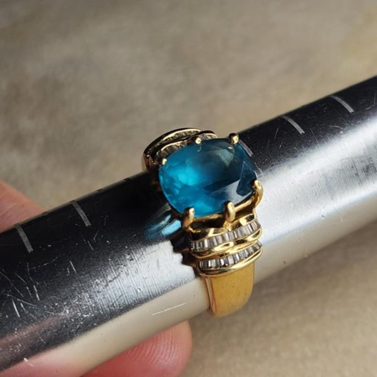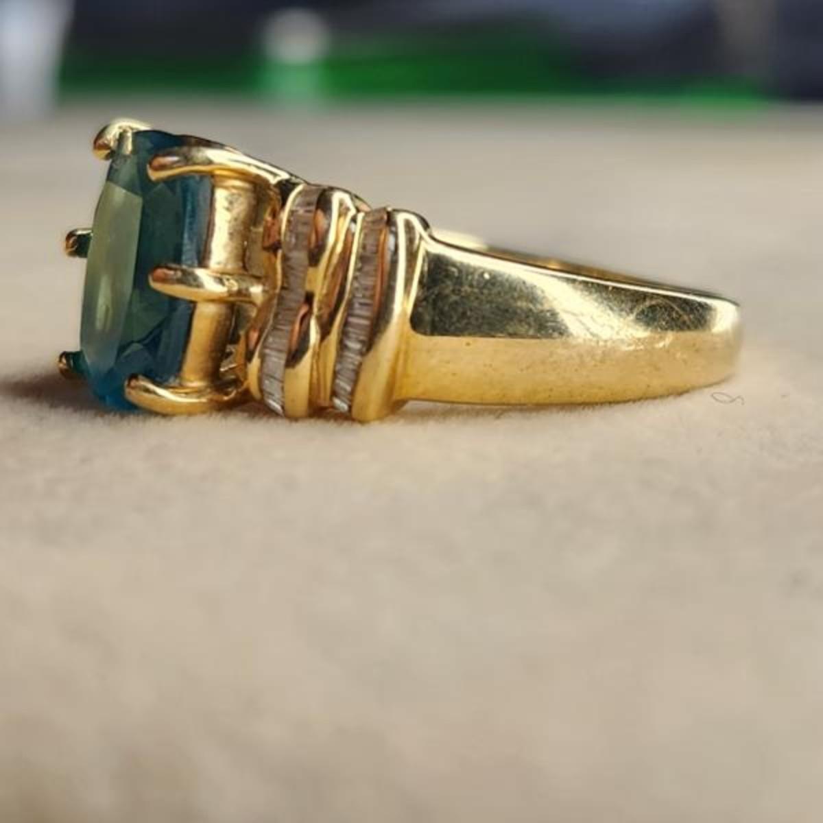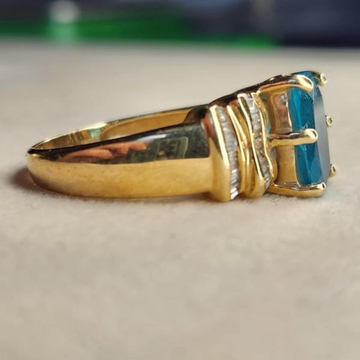 14k yelow gold blue topaz diamond ring size 9.25
