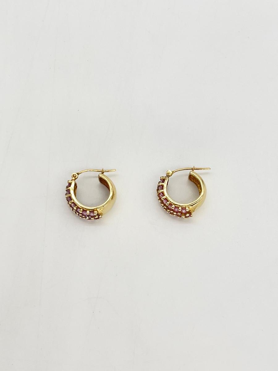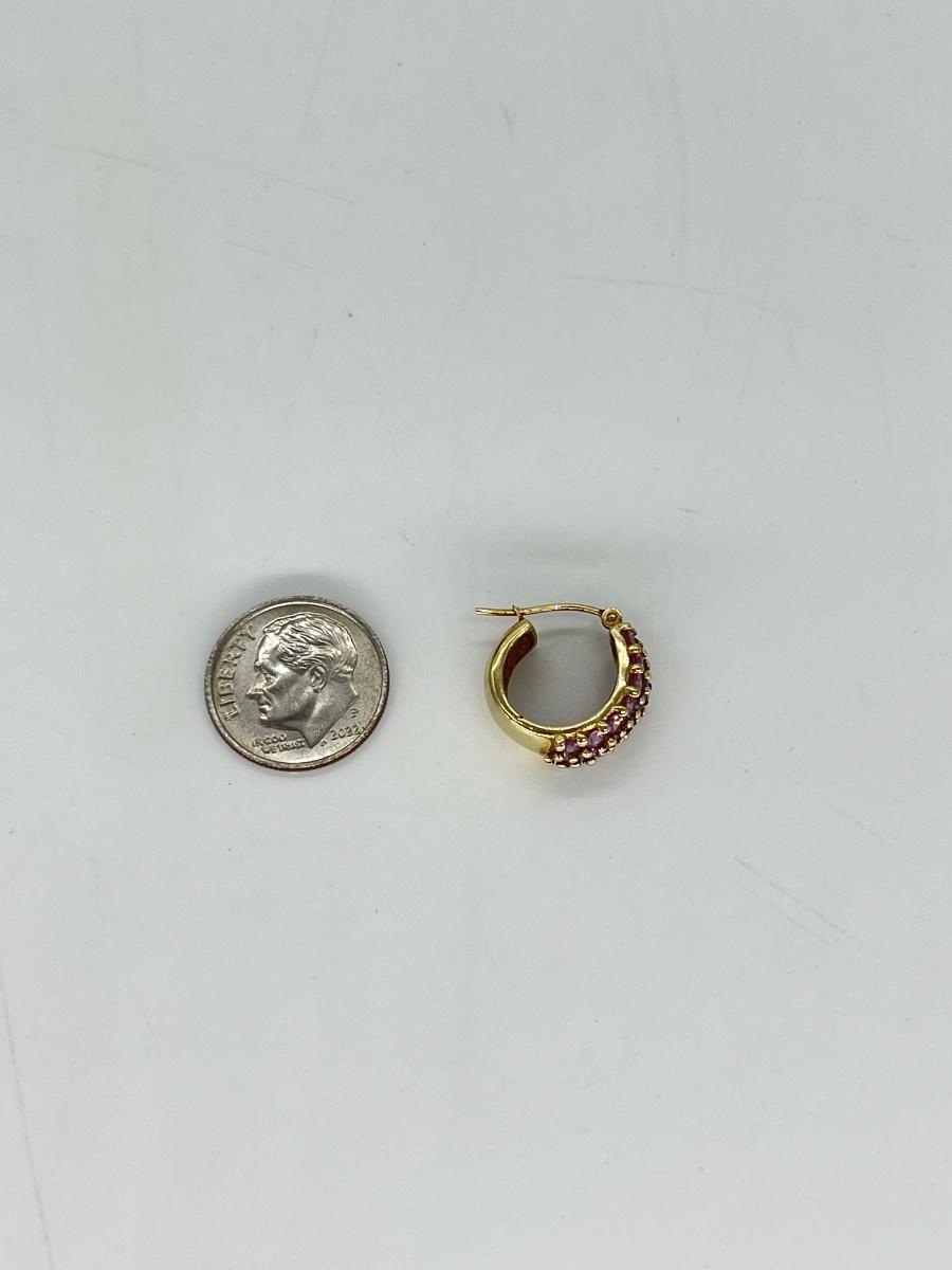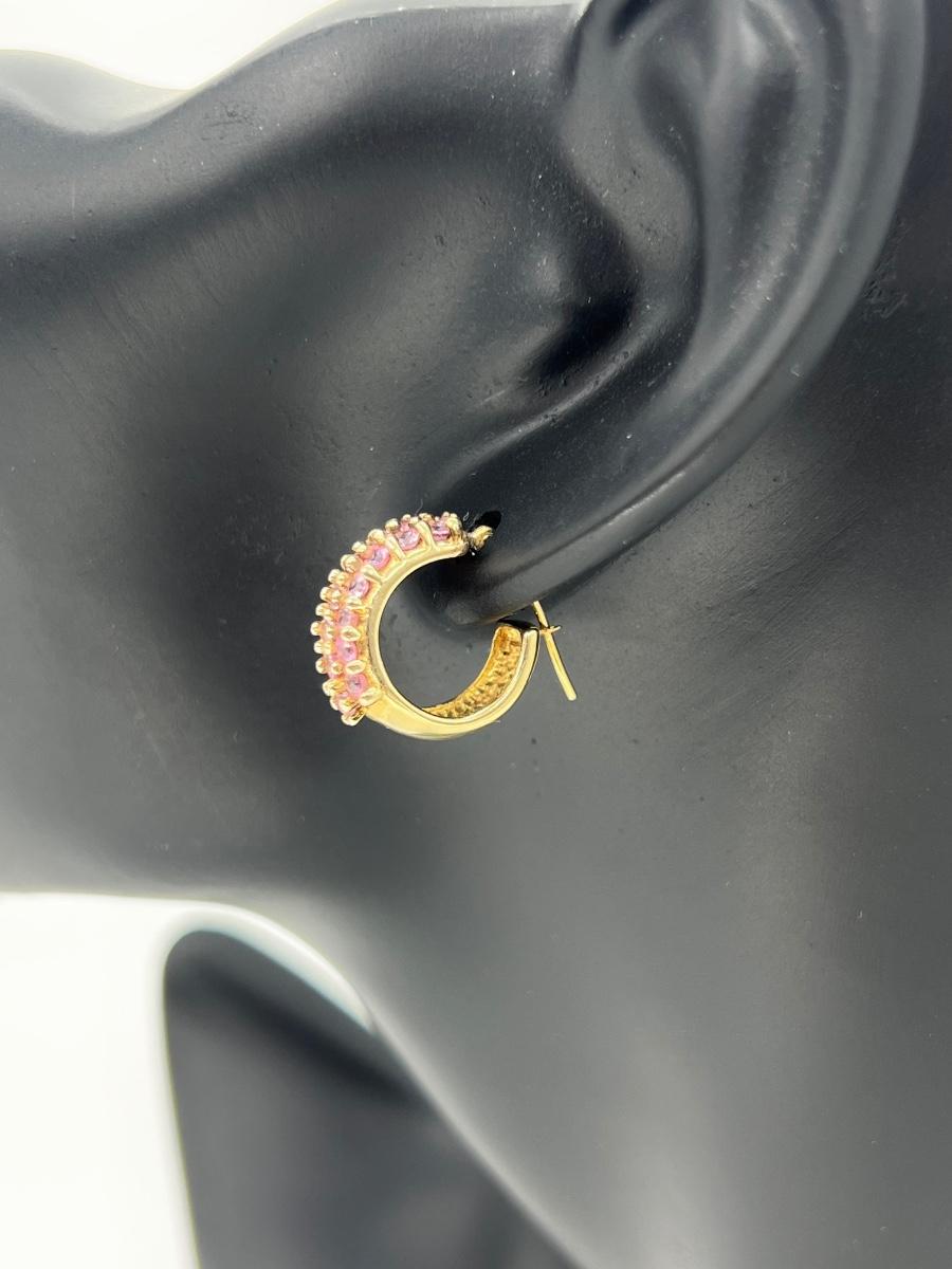 14K YG ~ 15mm Pink Tourmaline Hoop E/R ~ *Read Details