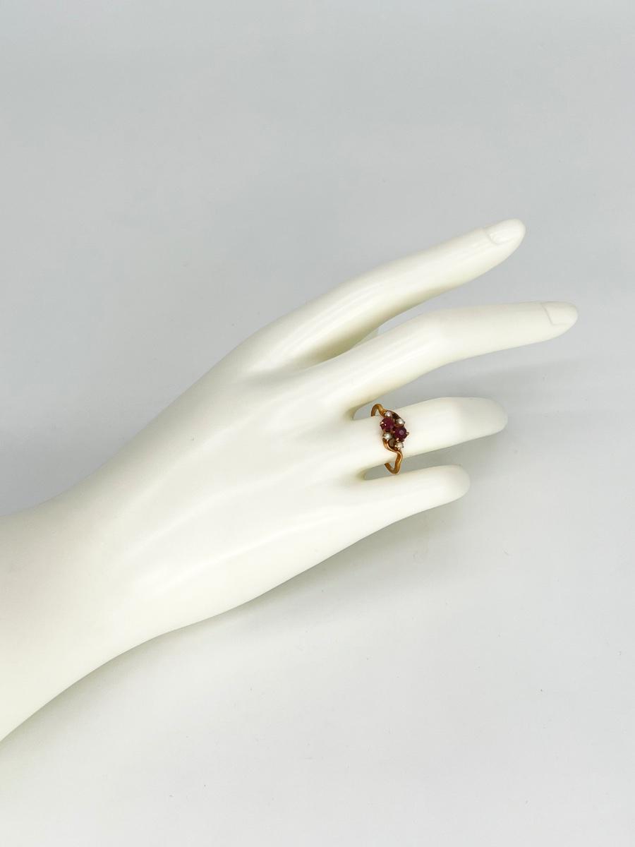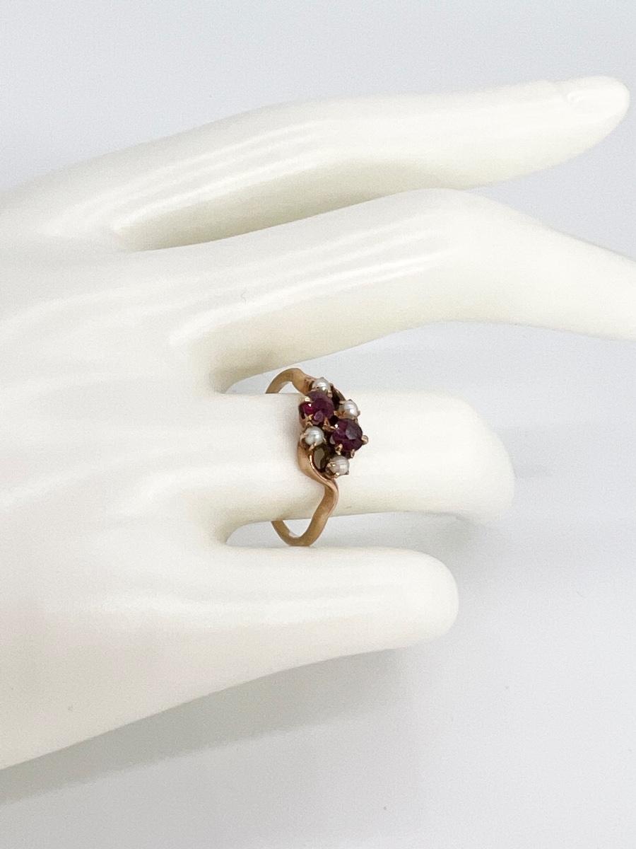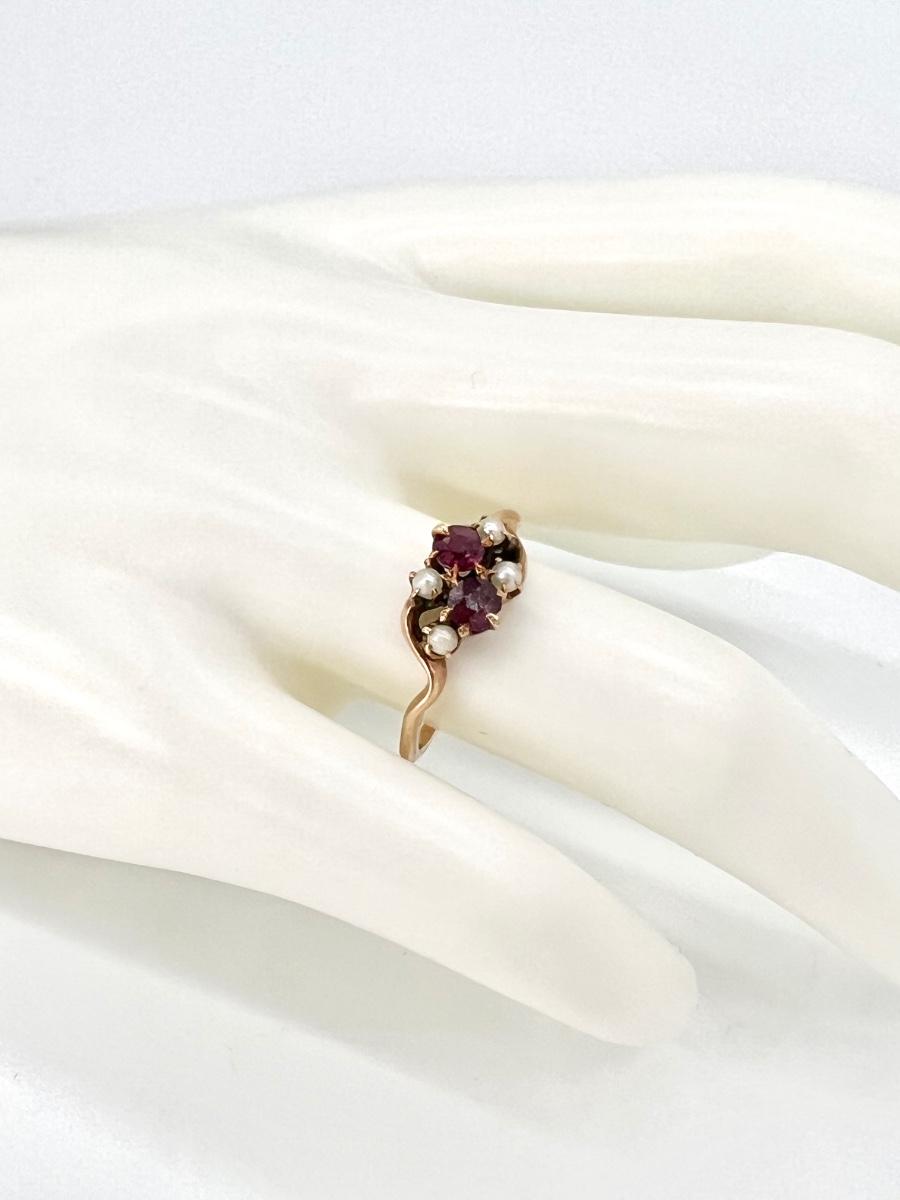14K Rose Gold ~ Small pearls with deep pink stones ~ size 7 ~ 2 pink stones ~ 4 small pearls ~ Stones = 4mm round ~ Pearls = 2mm round
