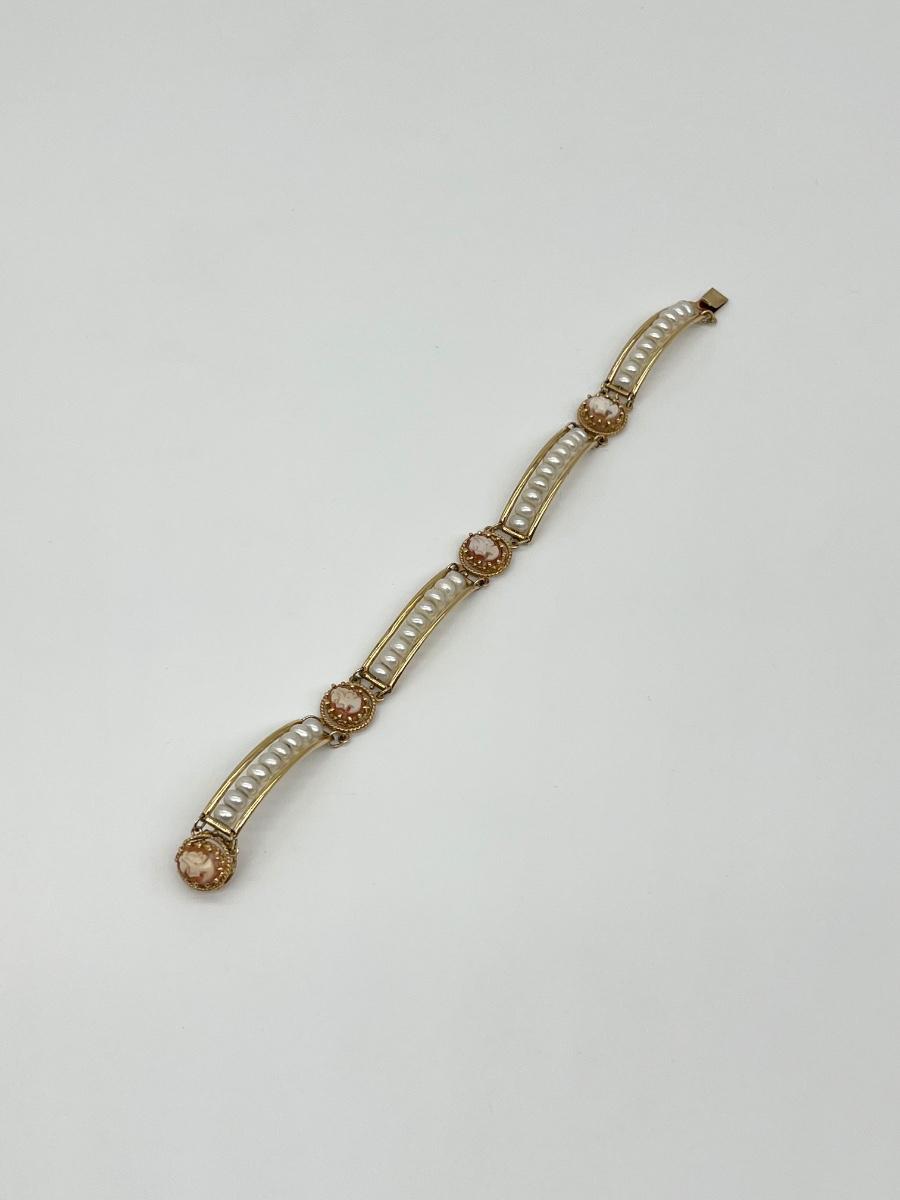 14K YG ~ Cameo drop lever back earrings ~ Cameo/Pearl bracelet ~ 7" bracelet ~ 16 grams total ~ 6 cameos total ~ 37 pearls