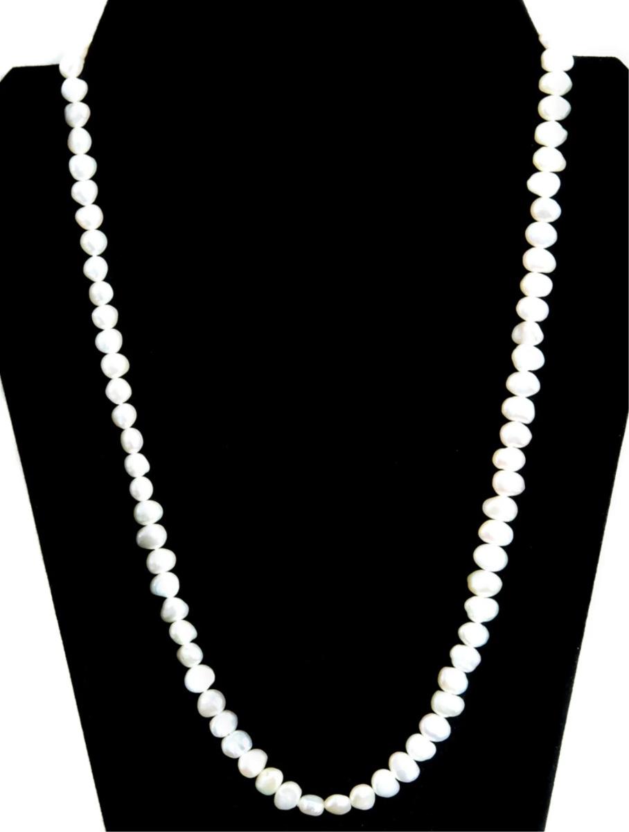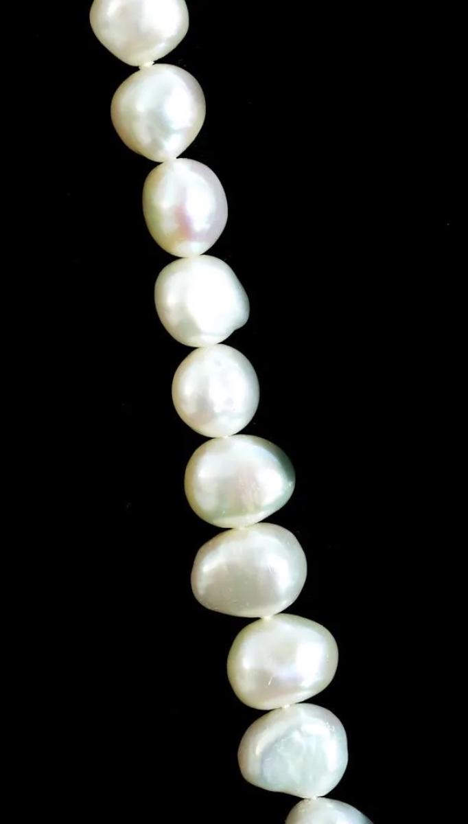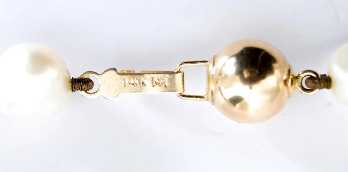Freshwater pearl string necklace having a 14k gold clasp. Stamped 14K on clasp. Approx. overall length 24".