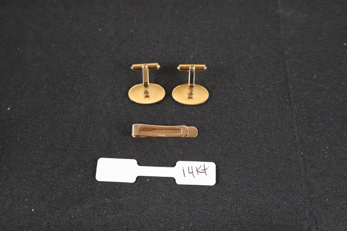14Kt Gold Cufflinks & Tie Clip - 12.6 grams