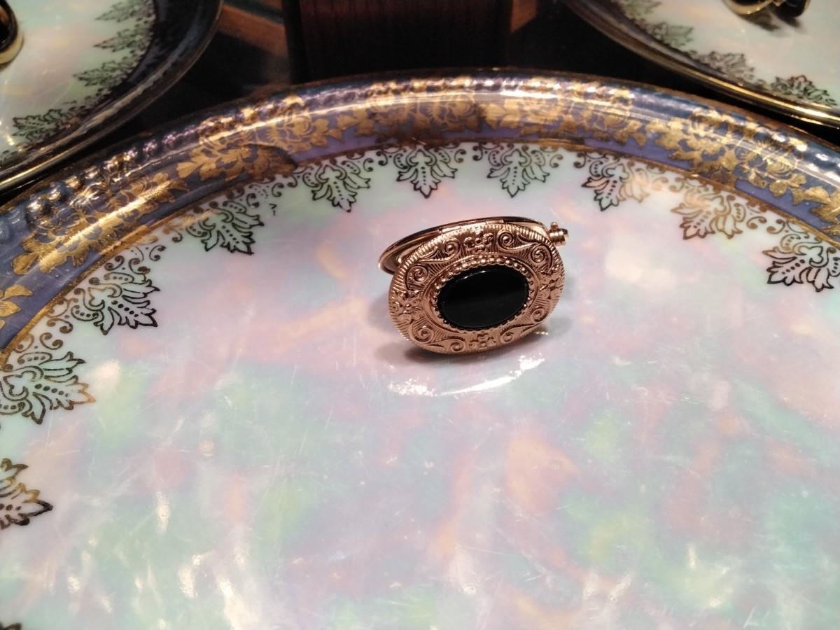 This is a very nice big locket with a 30x22 mm size measurement. The eye loop and bale add another 7 mm to the hanging length to make it 37 mm hanging off a chain. This is circa 1970 and has been locked away for all these years. New old stock warehouse purchase. The inside holds two pics and there are removable frames and picture covers as well. The face is decorated in very fine heavy embossed design and set with genuine black onyx stone. Brand new, there is not a scratch on it. The workmanship is TOP Notch. Great locket with cameo, mint shape, don't miss it!