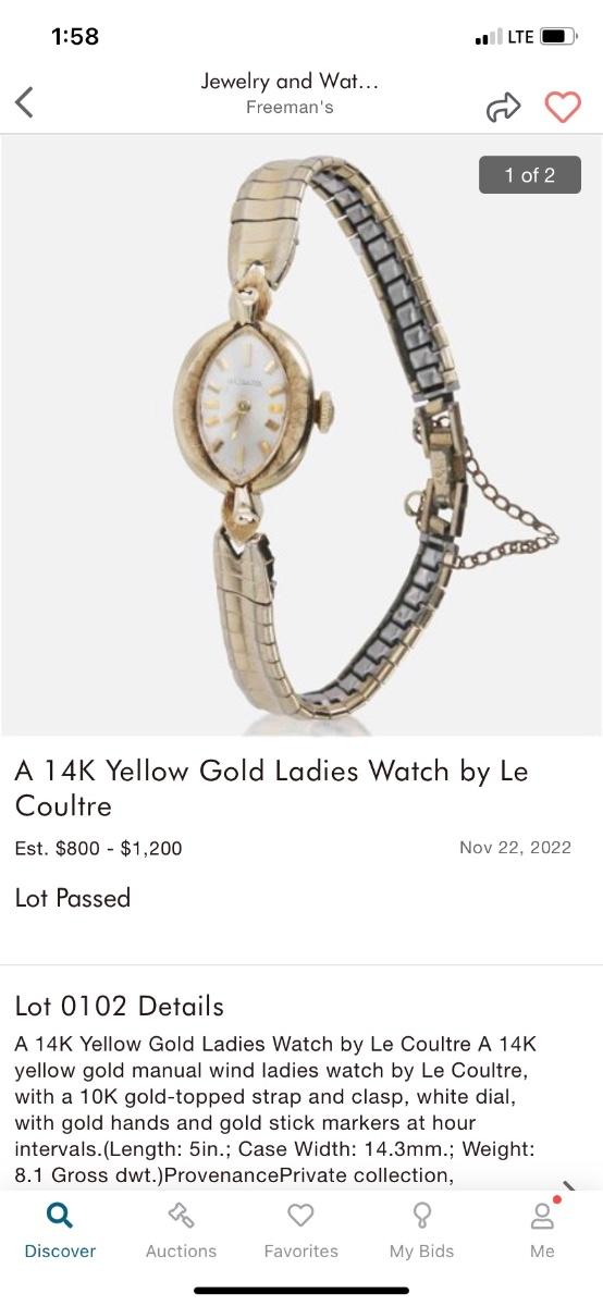 14KT Le Coultre GOLD WATCH