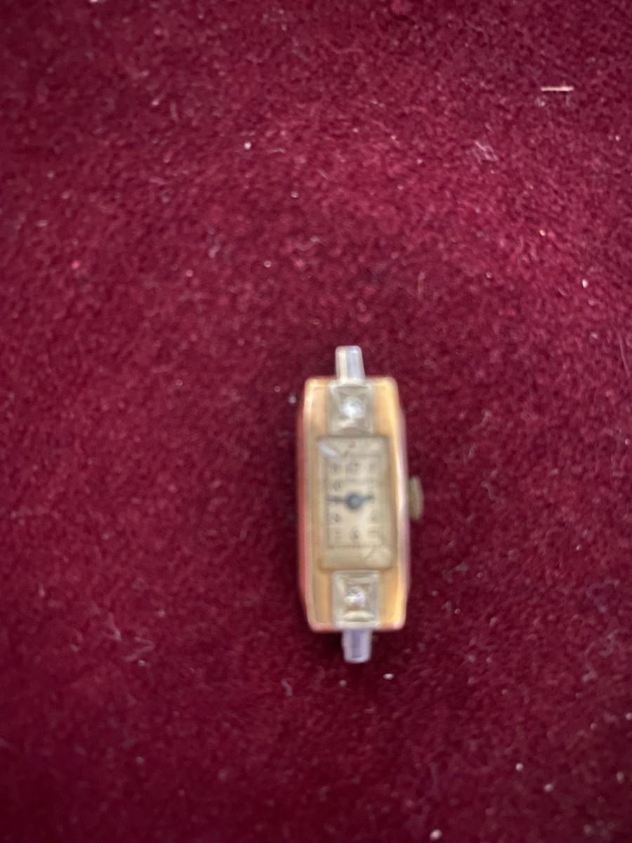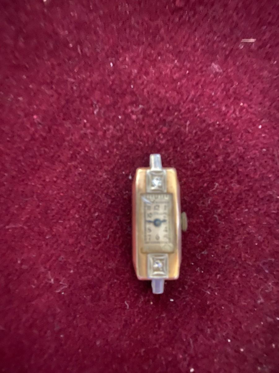 LOT 183 14kt gold Waltham watch fob 2 diamonds Strauss&Neugass 14k solid gold on back