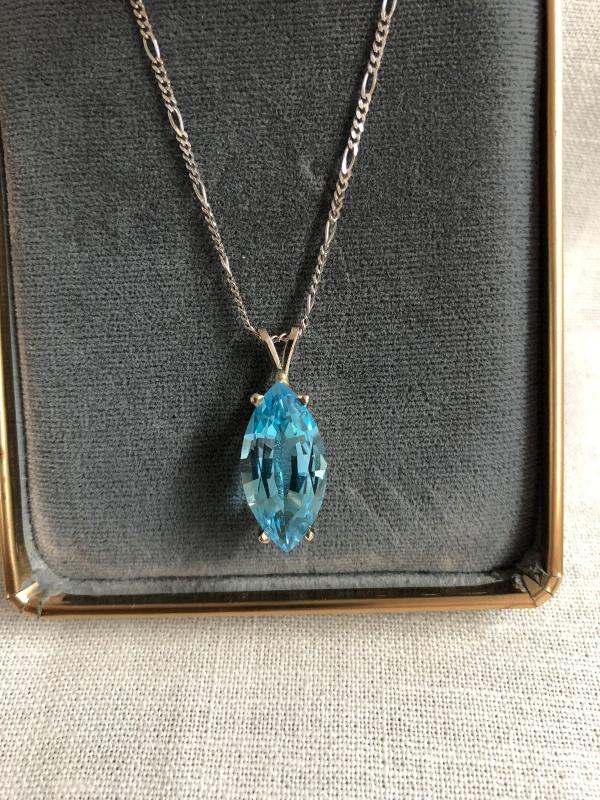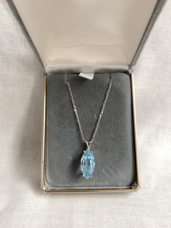 14Kt White Gold 24" Chain w/ Aquamarine Gemstone (Item 801)