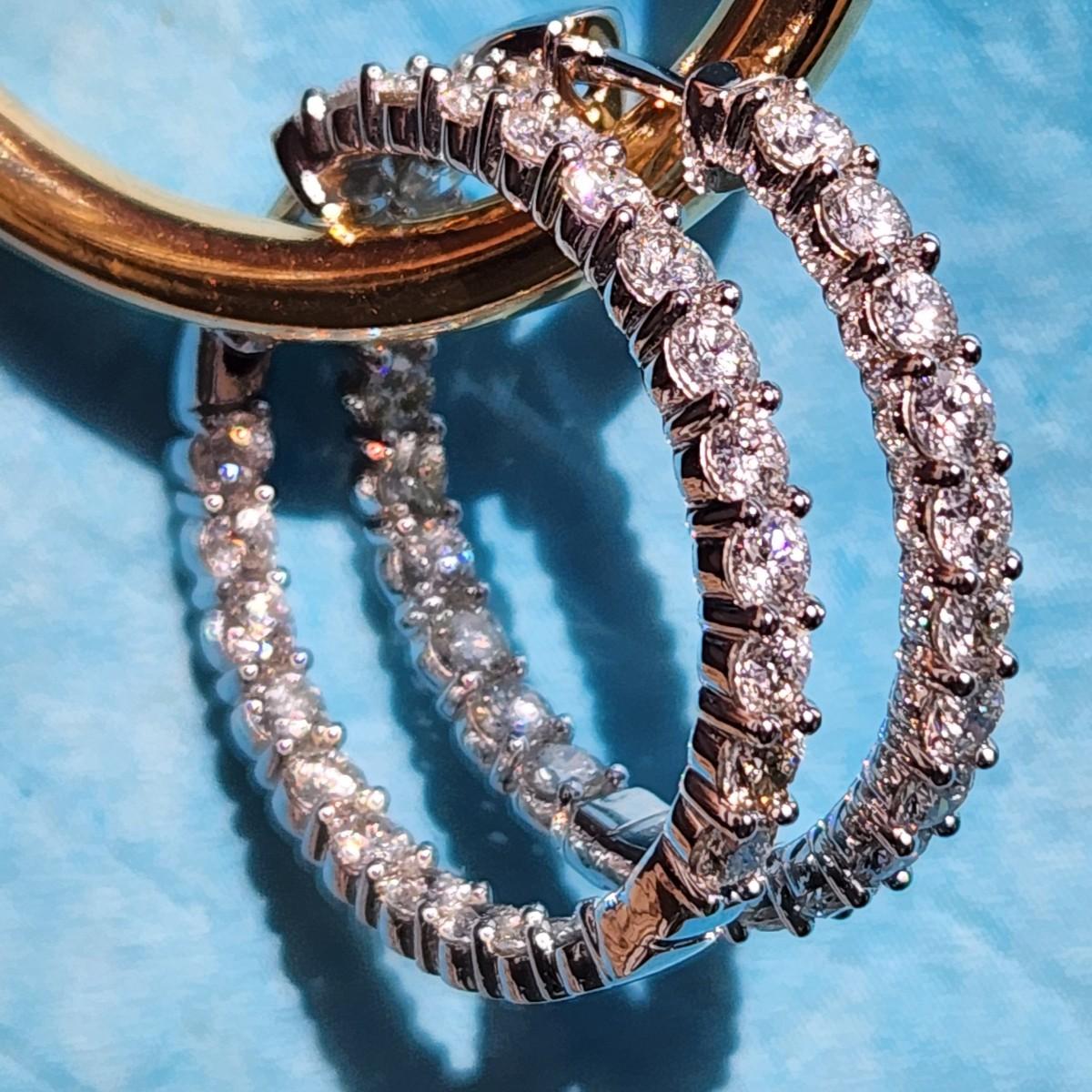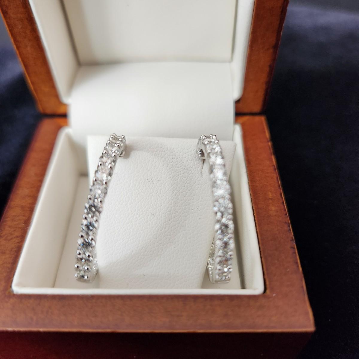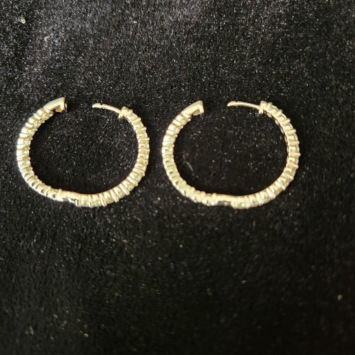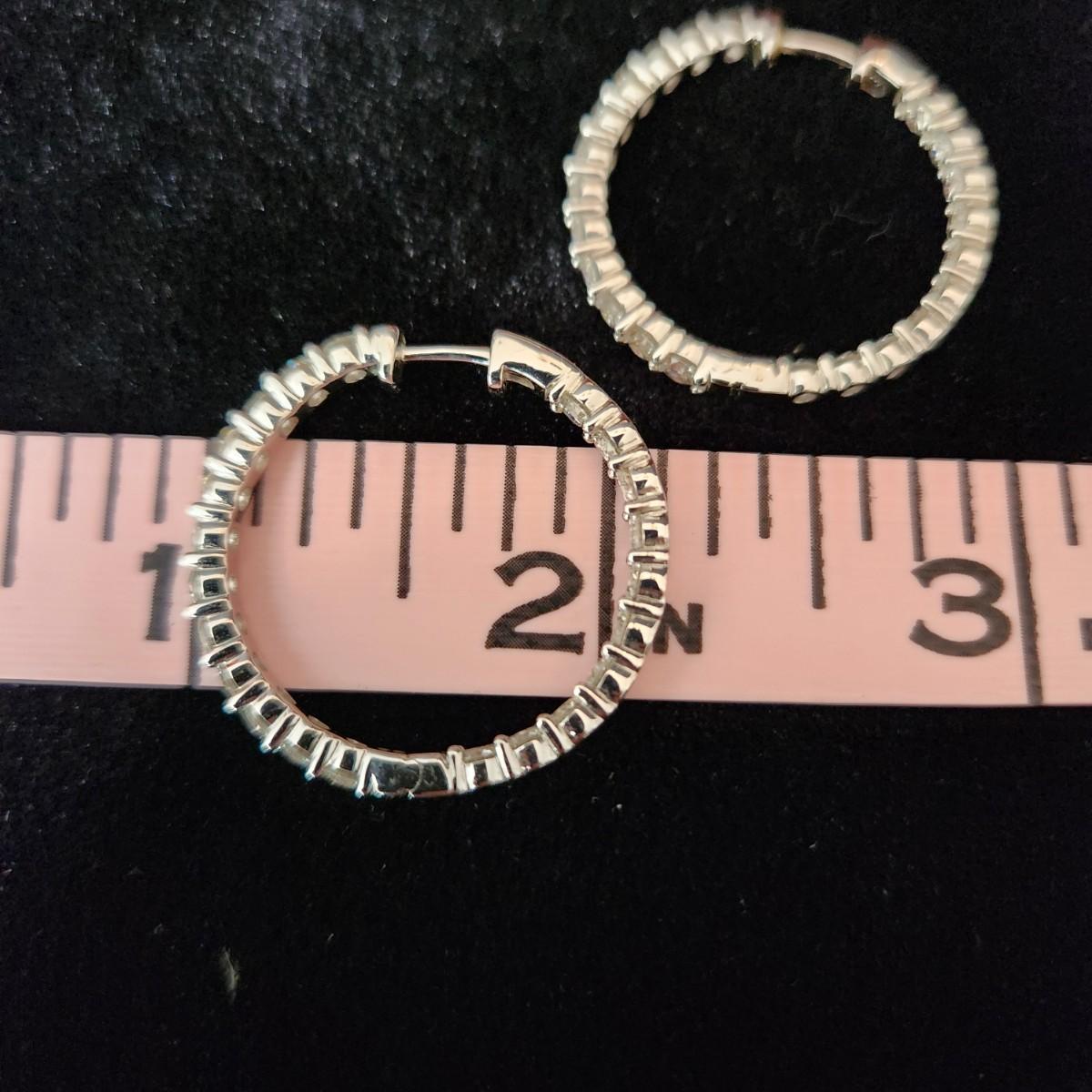 14Kt White Gold &Diamond Hoop Earrings 22 Diamonds each