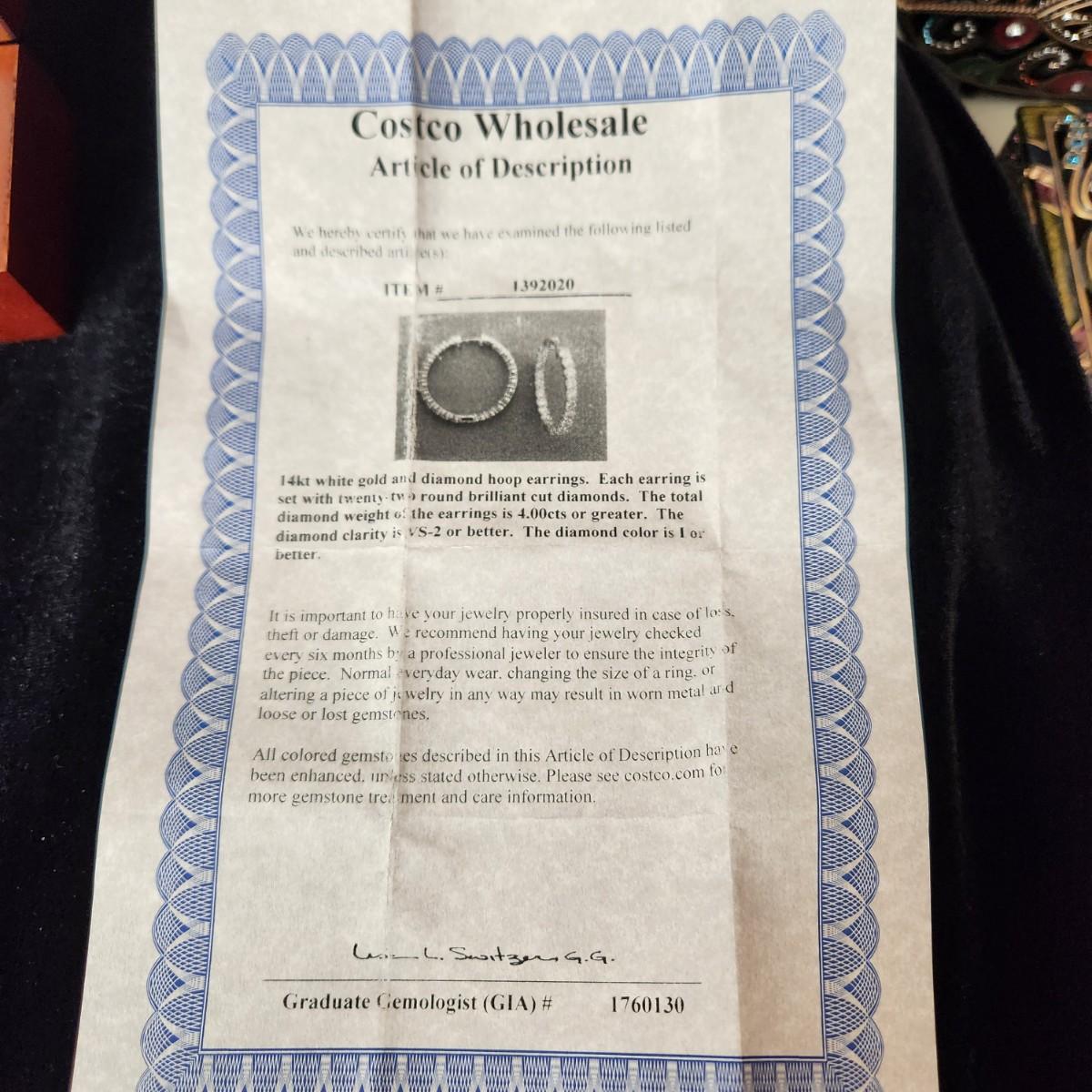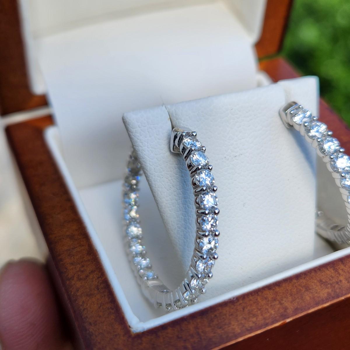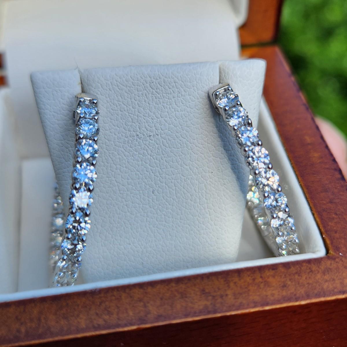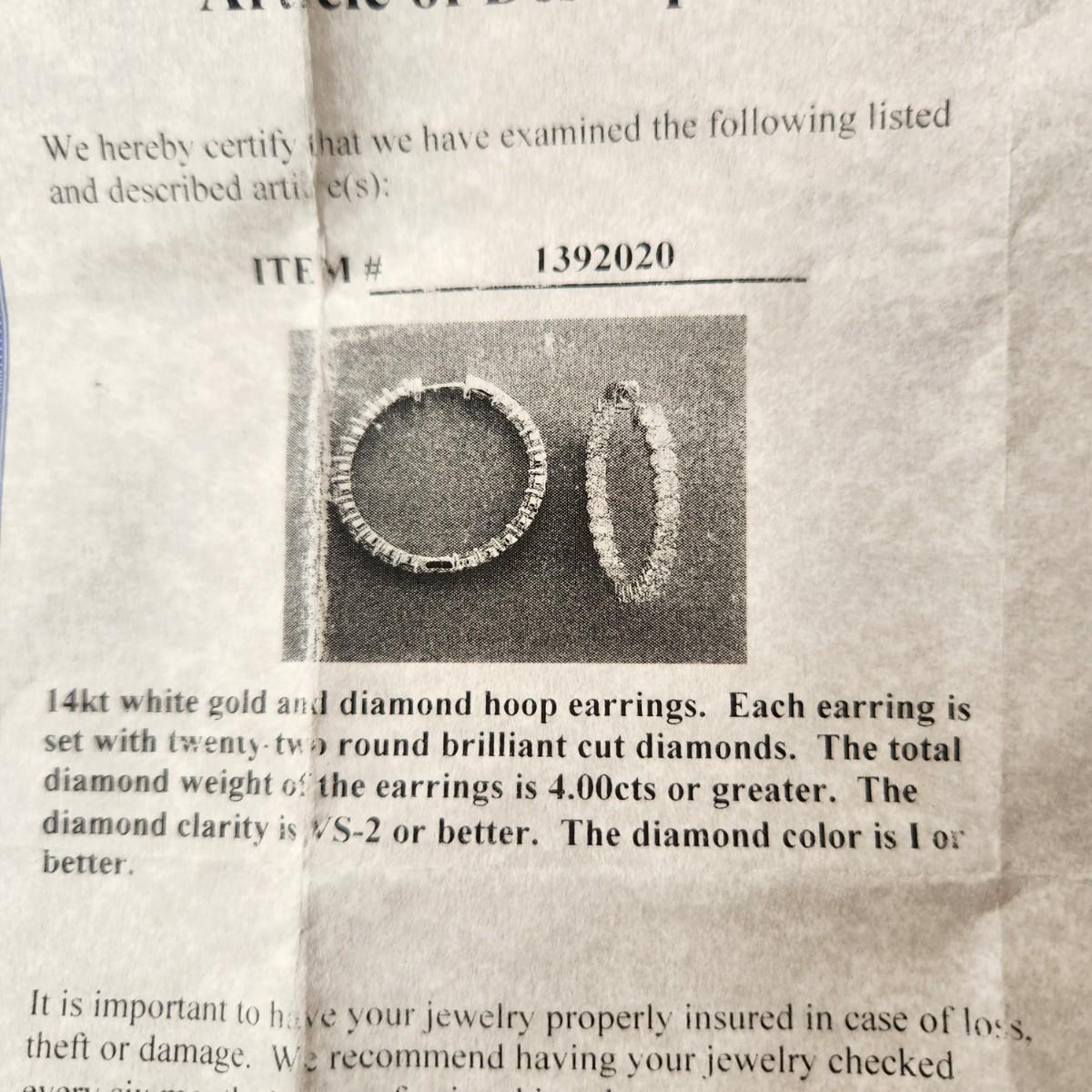 14Kt White Gold &Diamond Hoop Earrings 22 Diamonds each