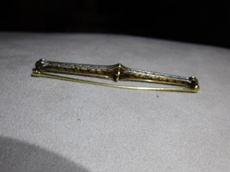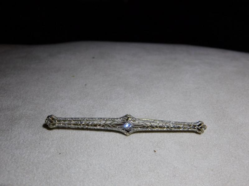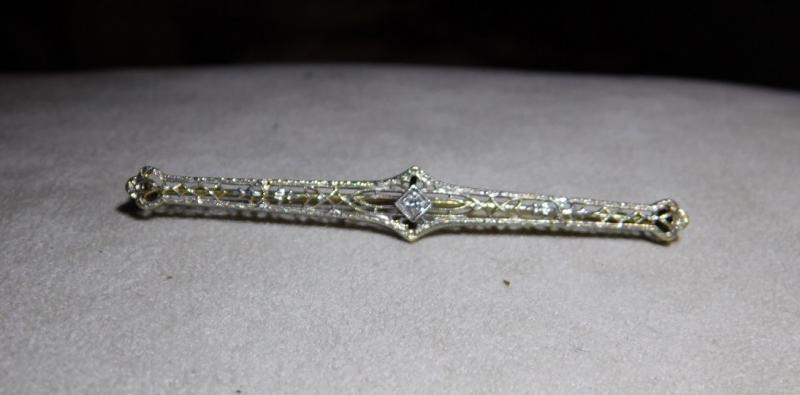 14kt White over Gold Vintage Pin with Diamond Stone Accent