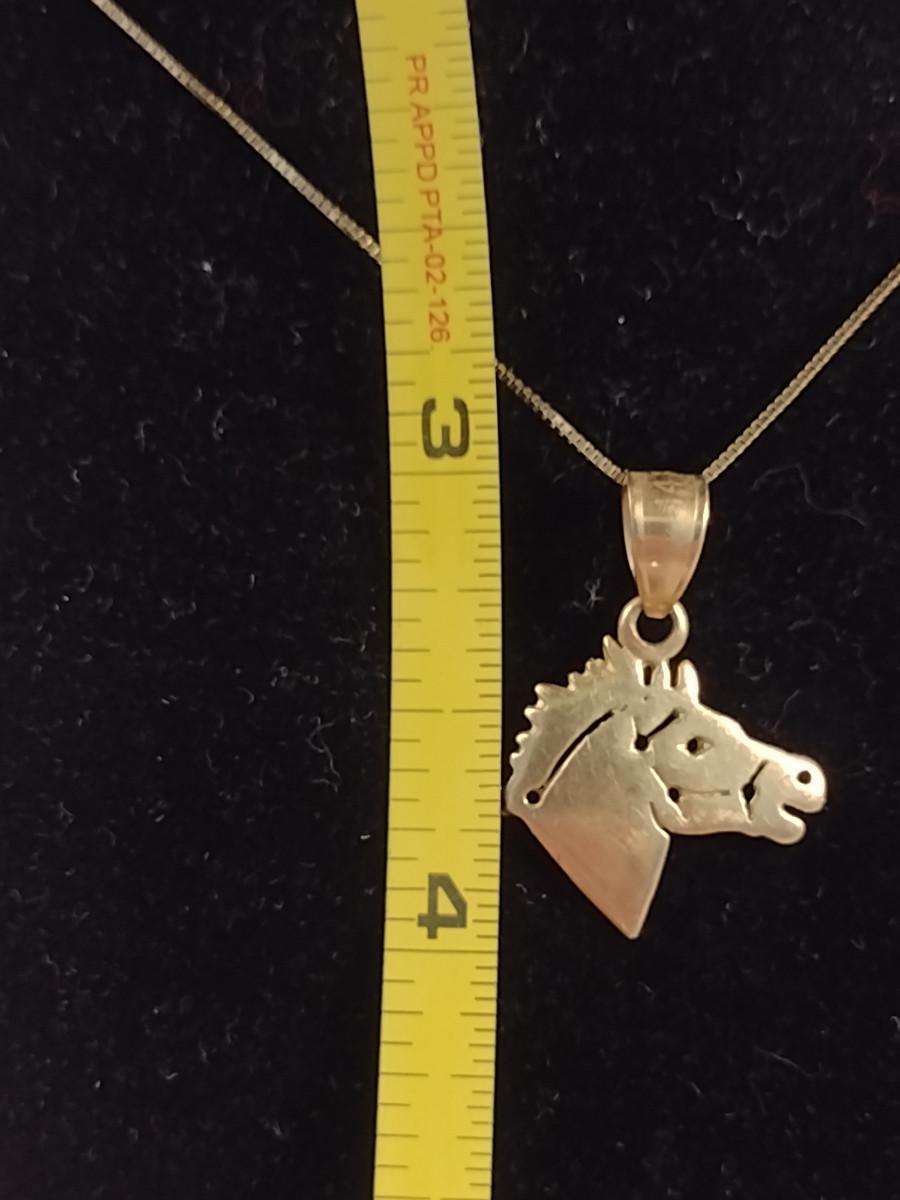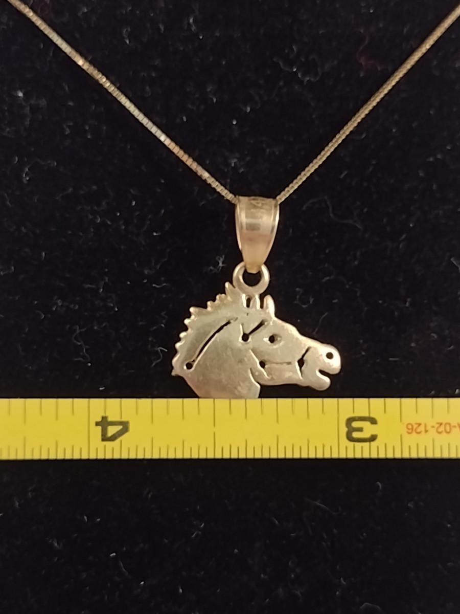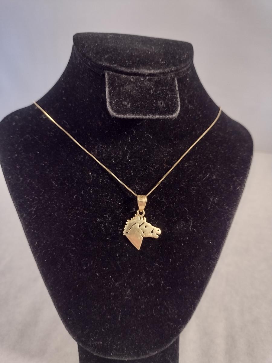 14kt Yellow Gold Necklace with Horse Head Pendant (#27). Necklace is approx 18" long. Total weight is approx 3.8 grams.