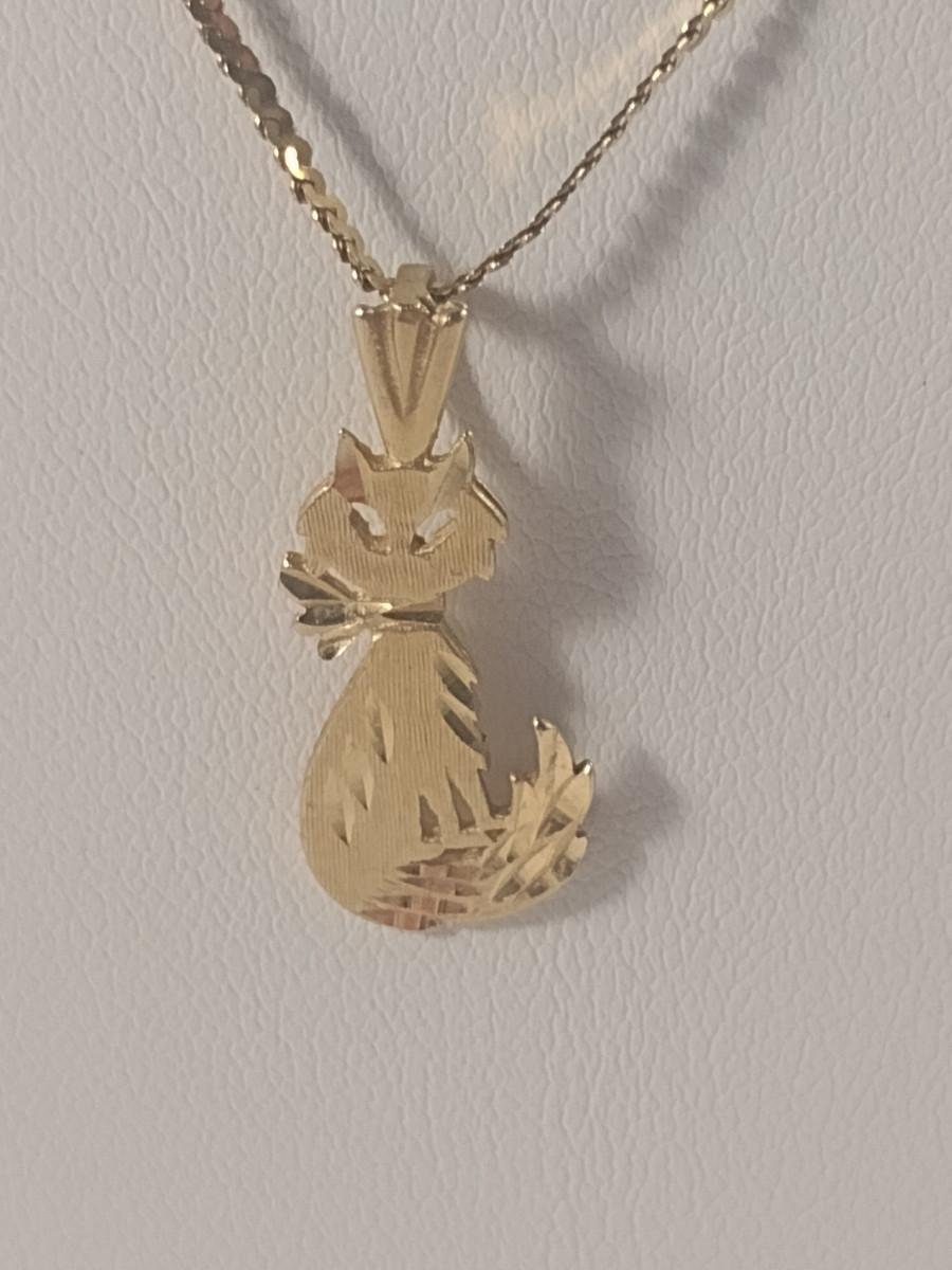 14Kt Yellow Gold Necklace with Cat Design Pendant- Approx Weight 3.7 Grams (#7)