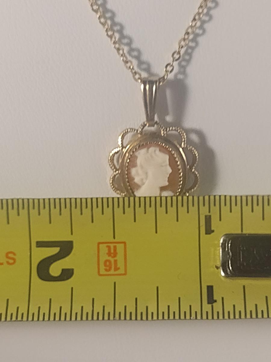 14Kt Yellow Gold Necklace with Cameo Pendant- Approx Weight 1.4 Grams (#10). Only the chain is marked 14K. The weight listed is for the chain only.