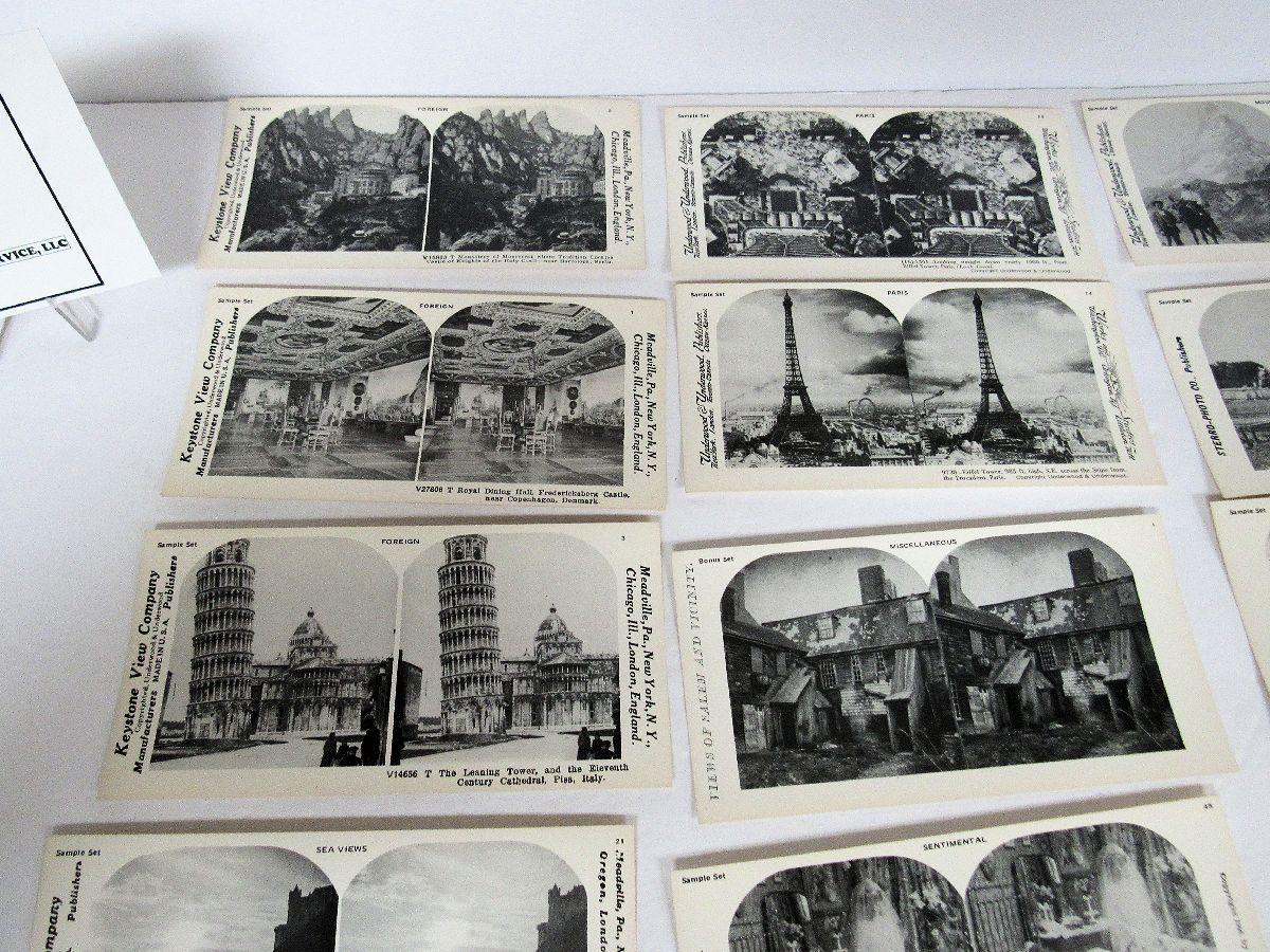 Nice shape. Some are from Keystone, some may be from Holmes. Included are: 5 transportation, 1 mountains, 2 Paris, 2 Sea Views, 3 Foreign, 4 Old West. Shipping is available at shipping cost plus $5.00 handling fee on one box, $10.00 handling fee on two boxes, $15.00 handling fee on 3 boxes. Helps cover shipping materials and labor cost.