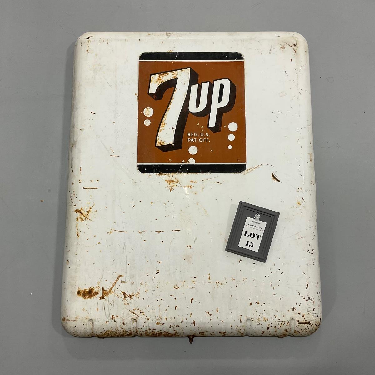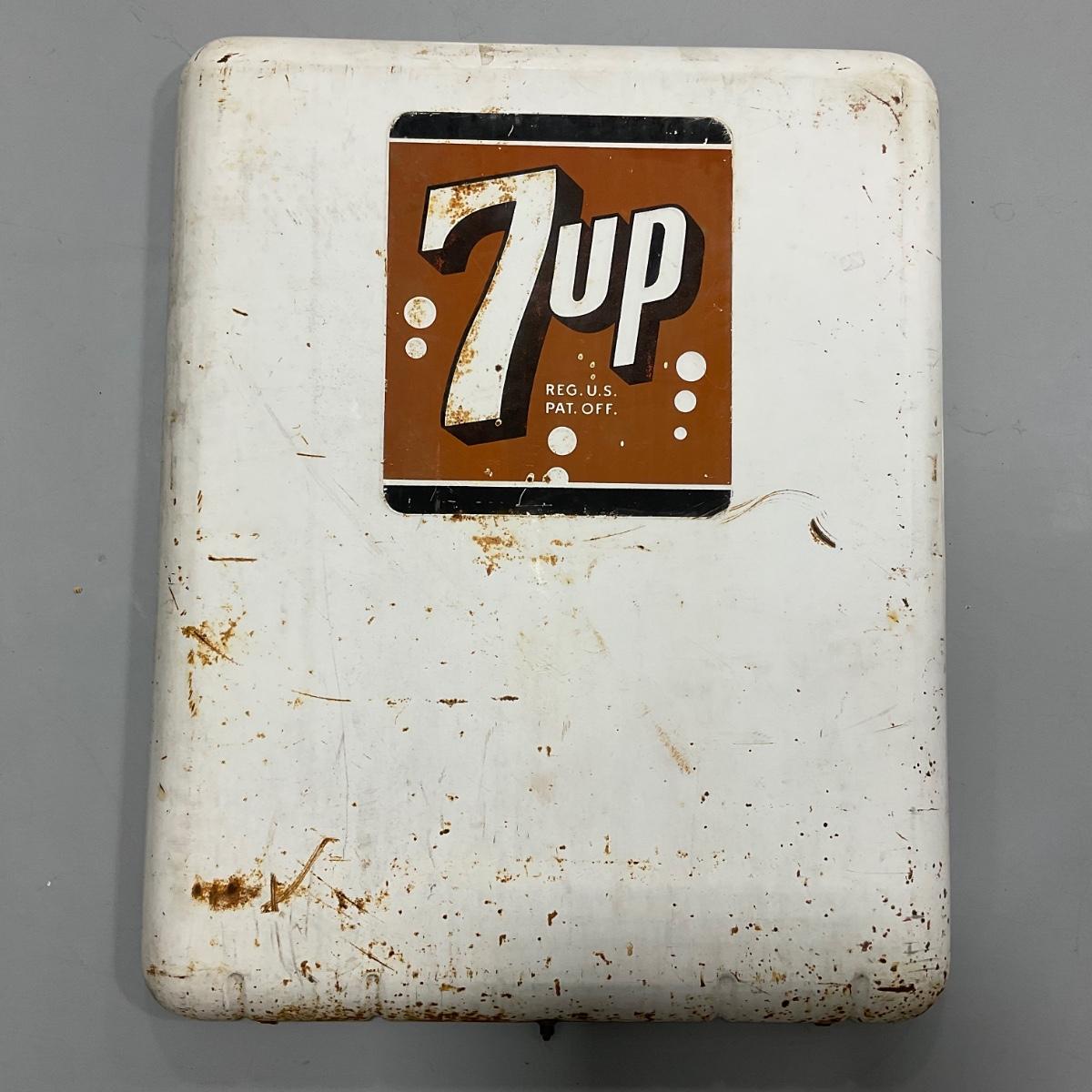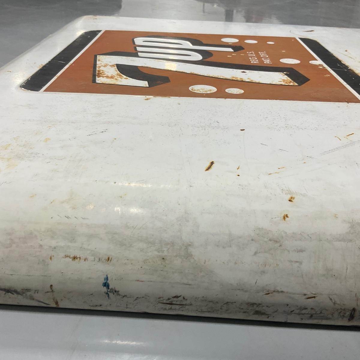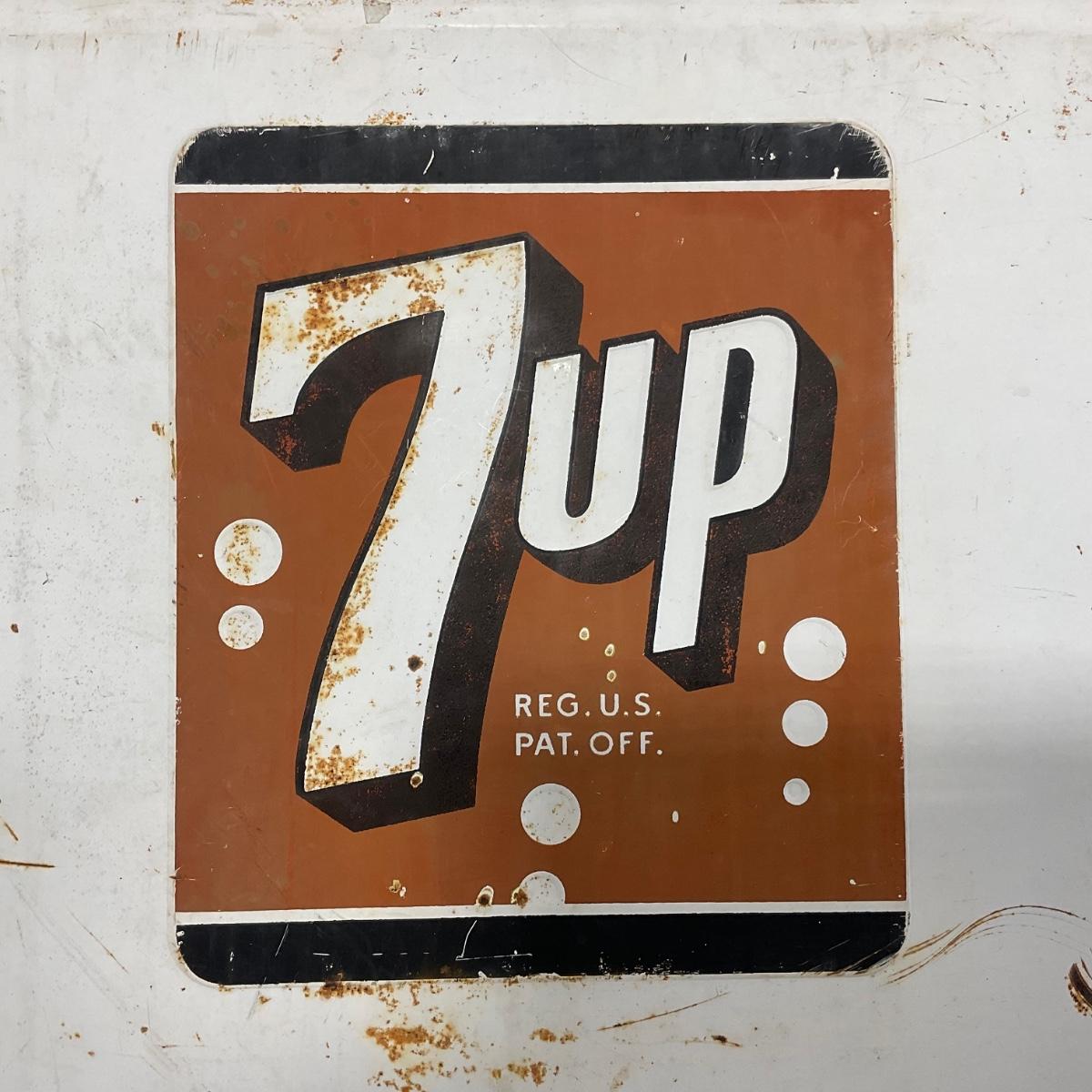 One vintage 7up cooler side panel. Does have some damage and back needs to be cleaned up. Piece is 26 inches by 32 inches. Please see photos for details and condition. ::: Shipping is NOT available on this lot. If you have any questions regarding this lot please contact the auctioneer either via this website, by direct email or by phone. PICK UP TIMES and other important information can be found in the TERMS and DESCRIPTION of the auction. Please take a look for pertinent information. Thanks!