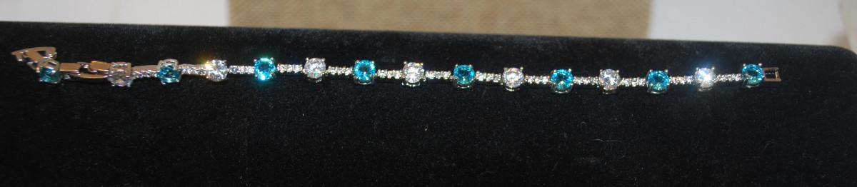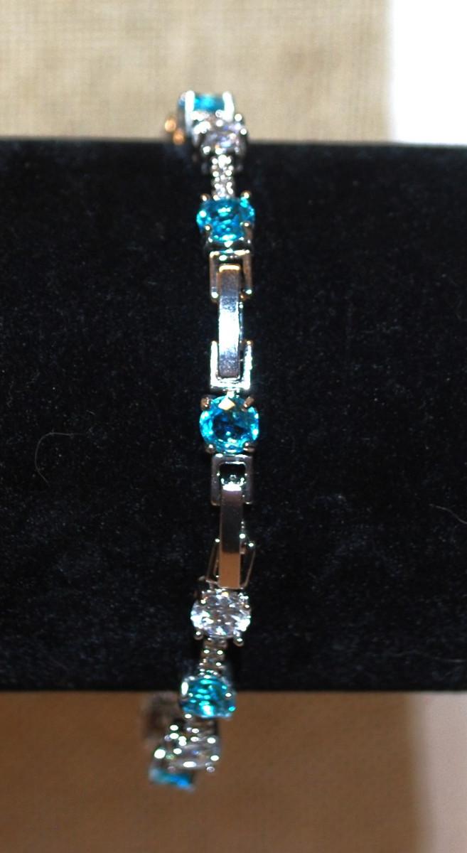15 Alternating Clear & Aquamarine Stones Bracelet with Fold-Over Clasp 6" L