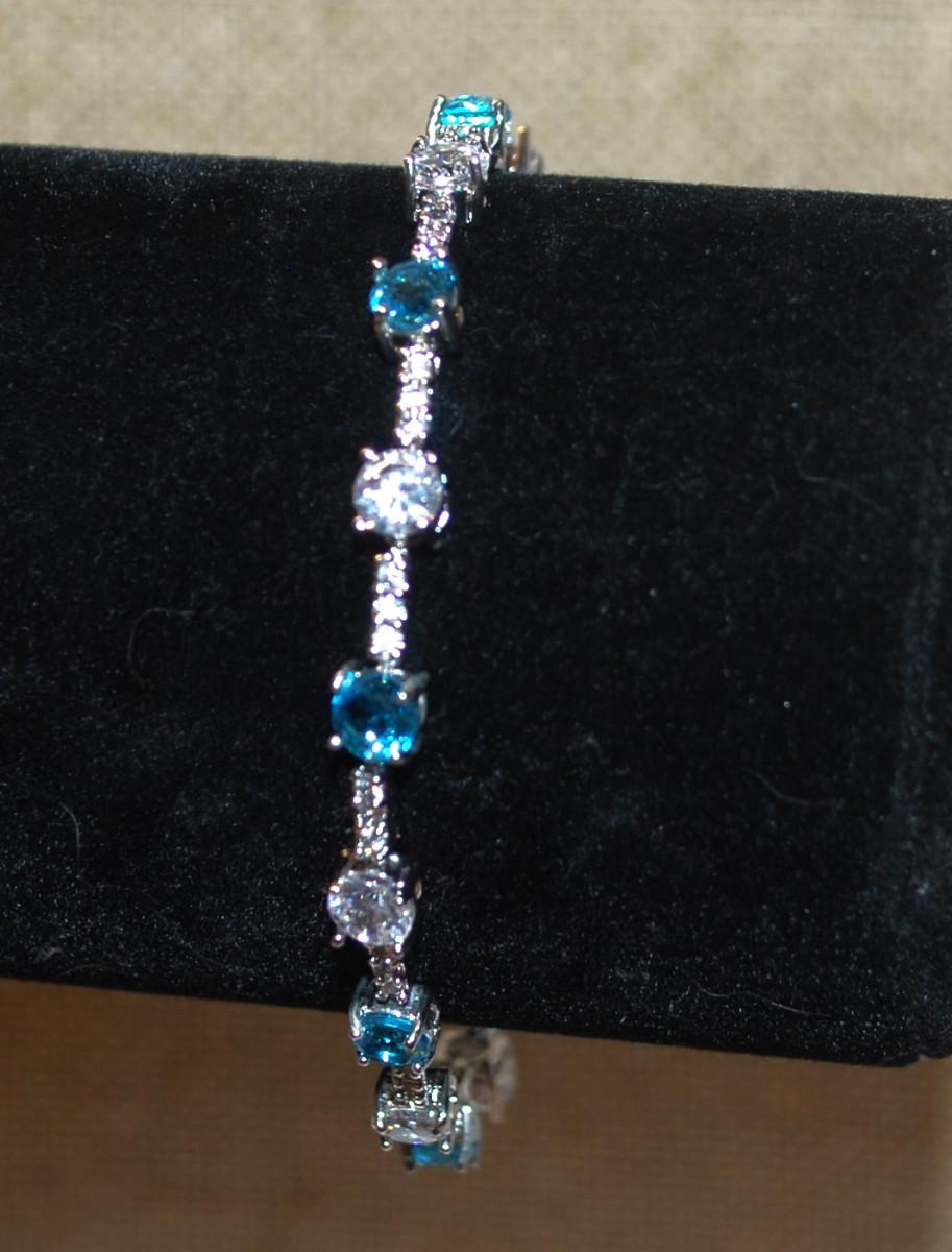 15 Alternating Clear & Aquamarine Stones Bracelet with Fold-Over Clasp 6" L