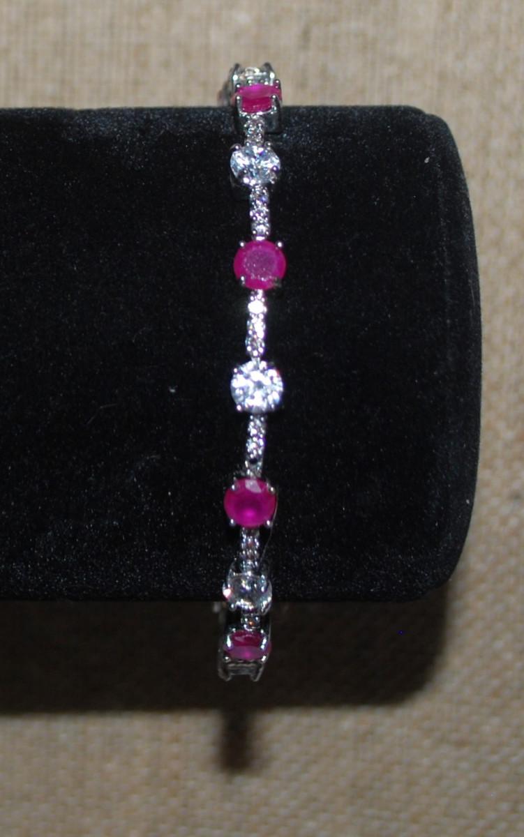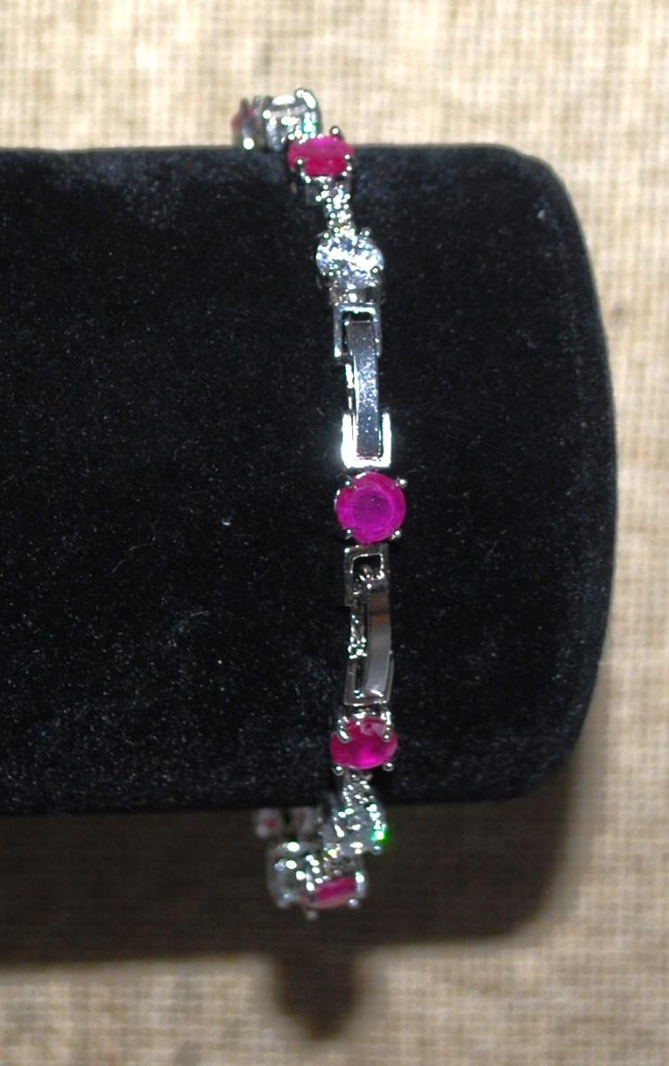 15 Alternating Clear & Cranberry Stones Bracelet with Fold-Over Clasp 6" L