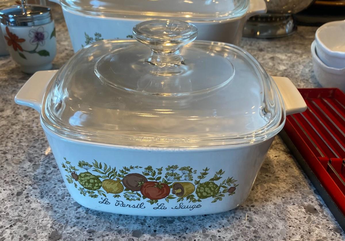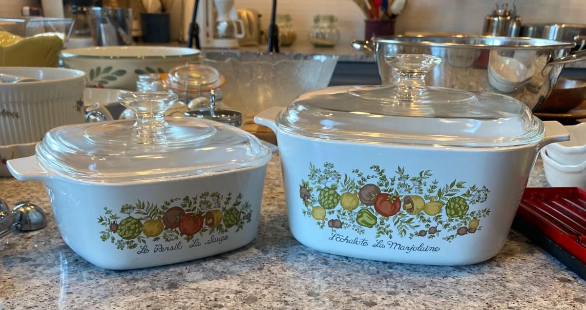 1.5 and 3 Qt Harvest Vegetable Corning Ware Casserole with Lids.