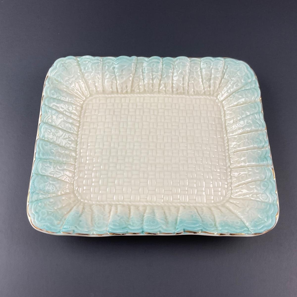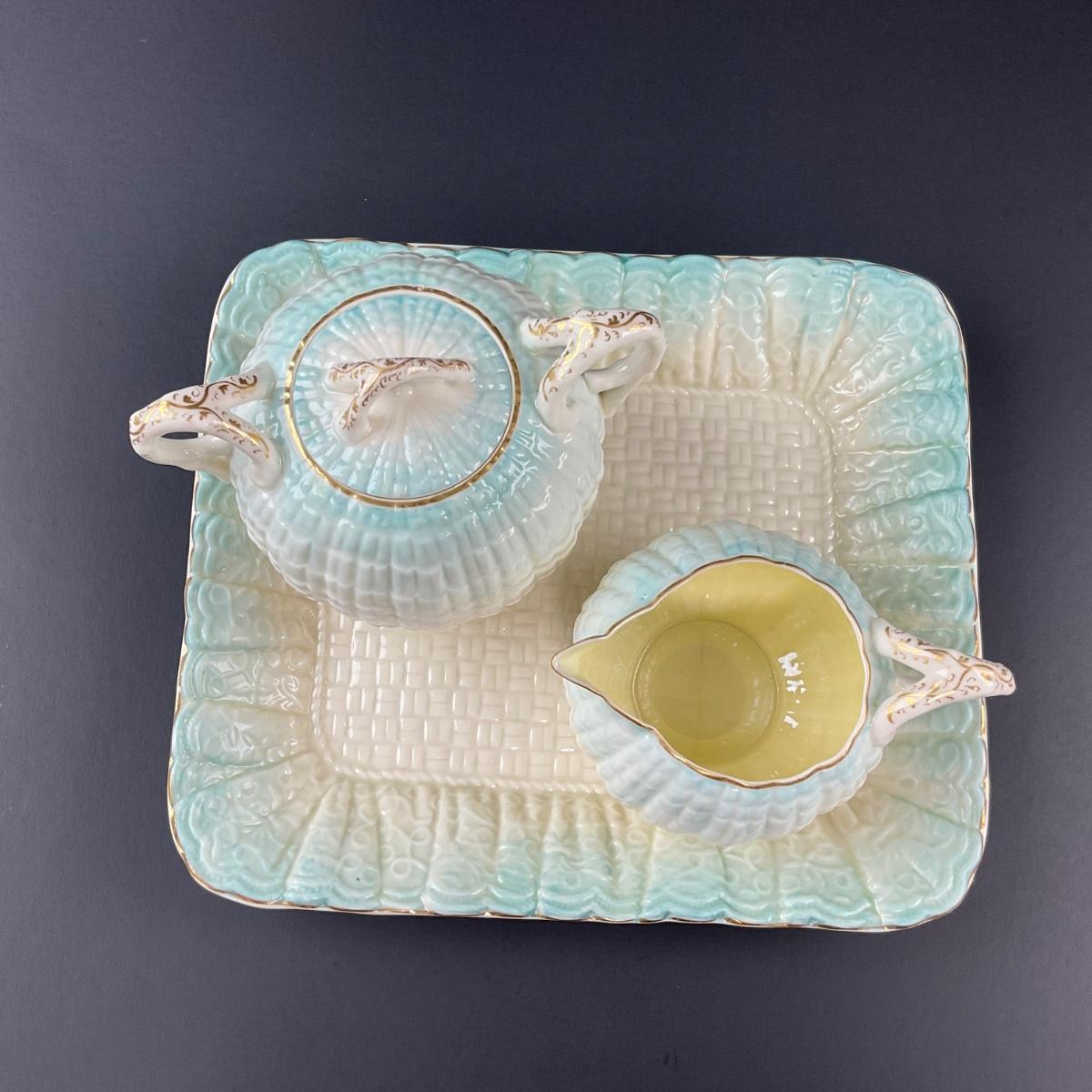 -15- BELLEEK | Blue Neptune Tray, Creamer, & Covered Sugar | Marked
