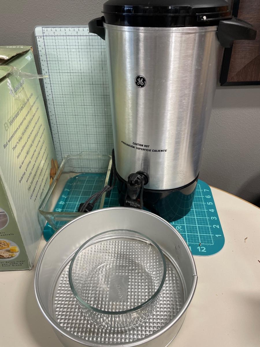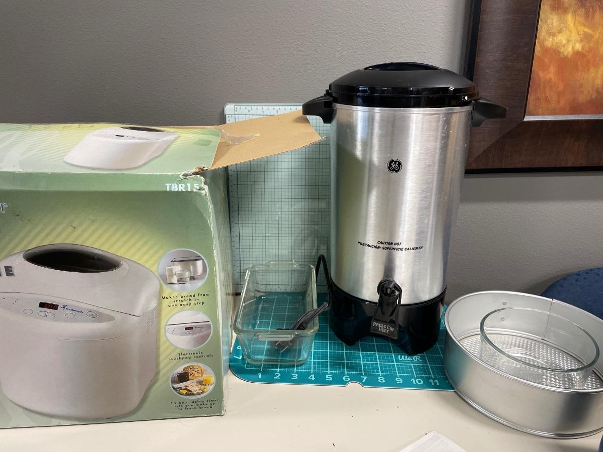 1.5 bread machine, 42 cup coffee urn and other baking items