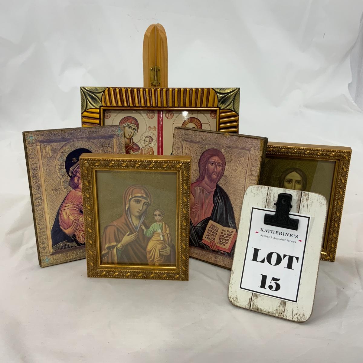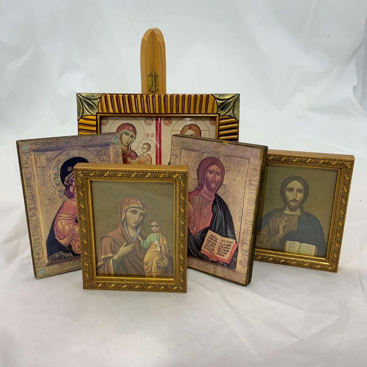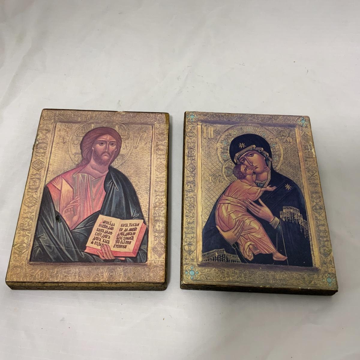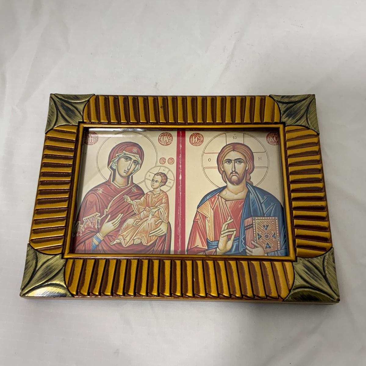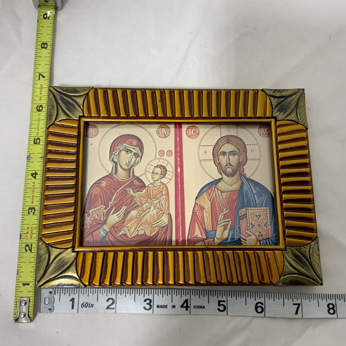 From the Estate of Peter and Alice Radovanovich: Framed together are two Eastern Orthodox Idols, Mary with Child and Jesus. These pictures were taken from two cards and look beautiful in the frame. // Two beautiful Eastern Orthodox Idols in matching frames. Mary with Child and Jesus. // Two nice matching Eastern Orthodox style renderings of Mary and Jesus. Please see photos for details and condition. ::: Shipping is available on this lot. If you require shipping you must let us know at the close of the auction. We will coordinate with you after the item has been won. Shipping fees will include insurance up to or exceeding the value of all items being mailed. If you have any questions regarding this lot please contact the auctioneer either via this website, by direct email or by phone. PICK UP TIMES and other important information can be found in the TERMS and DESCRIPTION of the auction. Please take a look for pertinent information. Thanks!