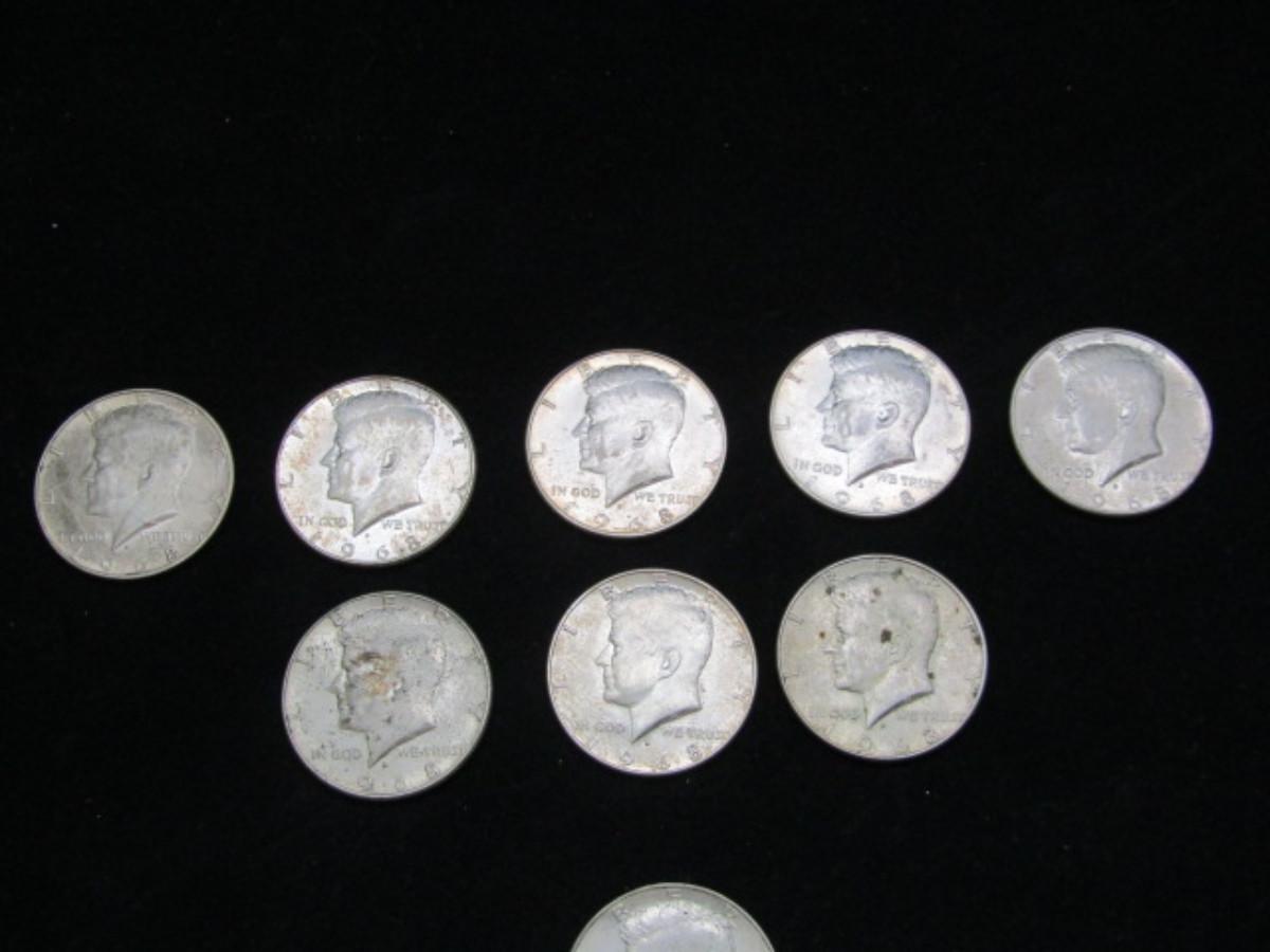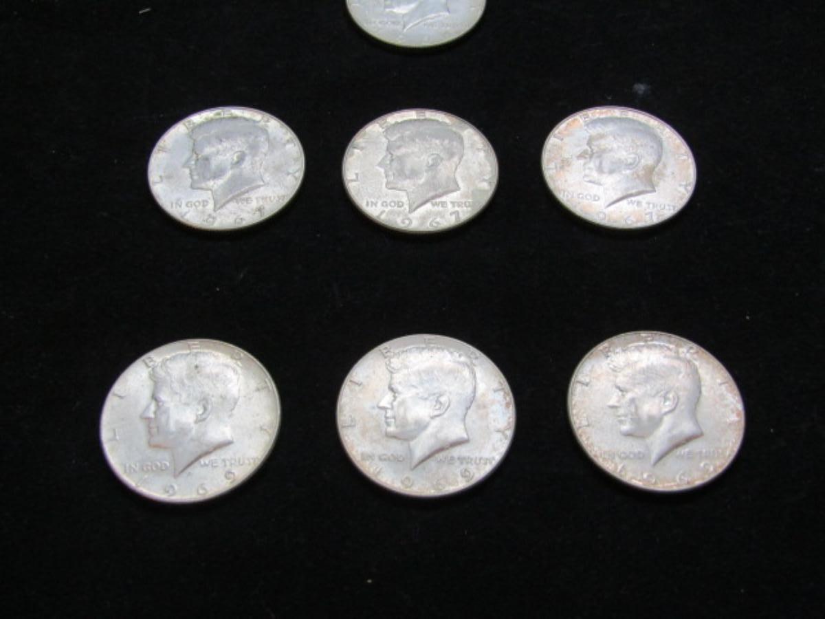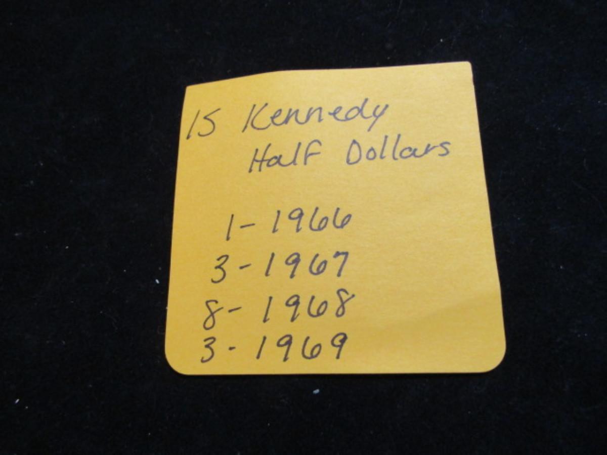 15 Kennedy Half Dollars (C). 1966- 1, 1967- 3, 1968 -8, 1969- 3.
