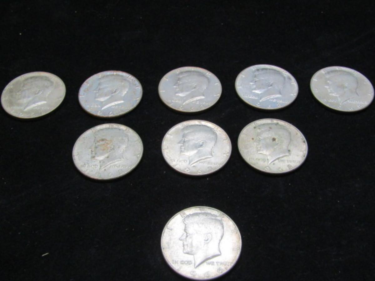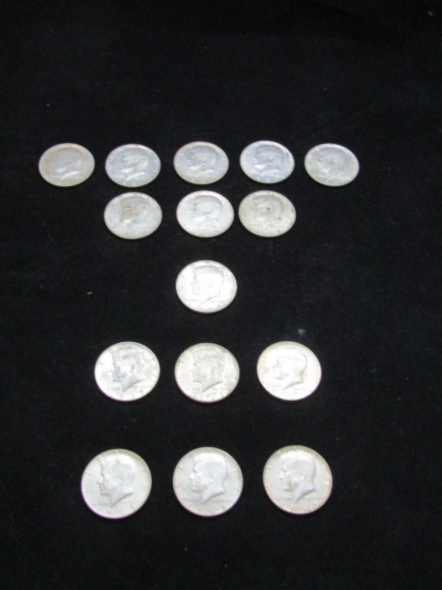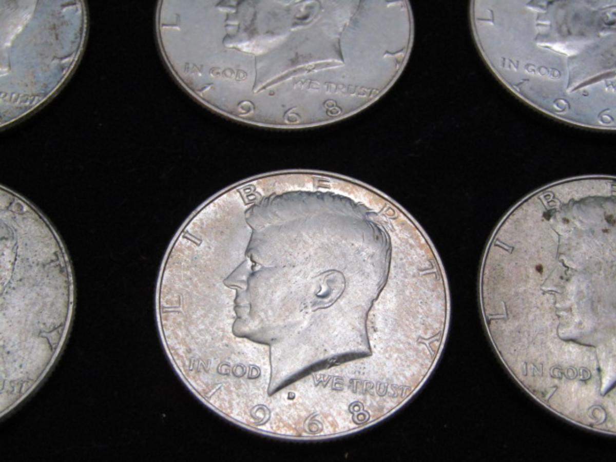 15 Kennedy Half Dollars (C). 1966- 1, 1967- 3, 1968 -8, 1969- 3.