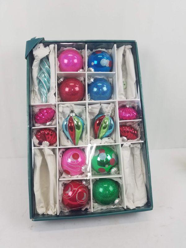 15 Large Christmas Tree Ornaments in Box (3 missing from original 18)