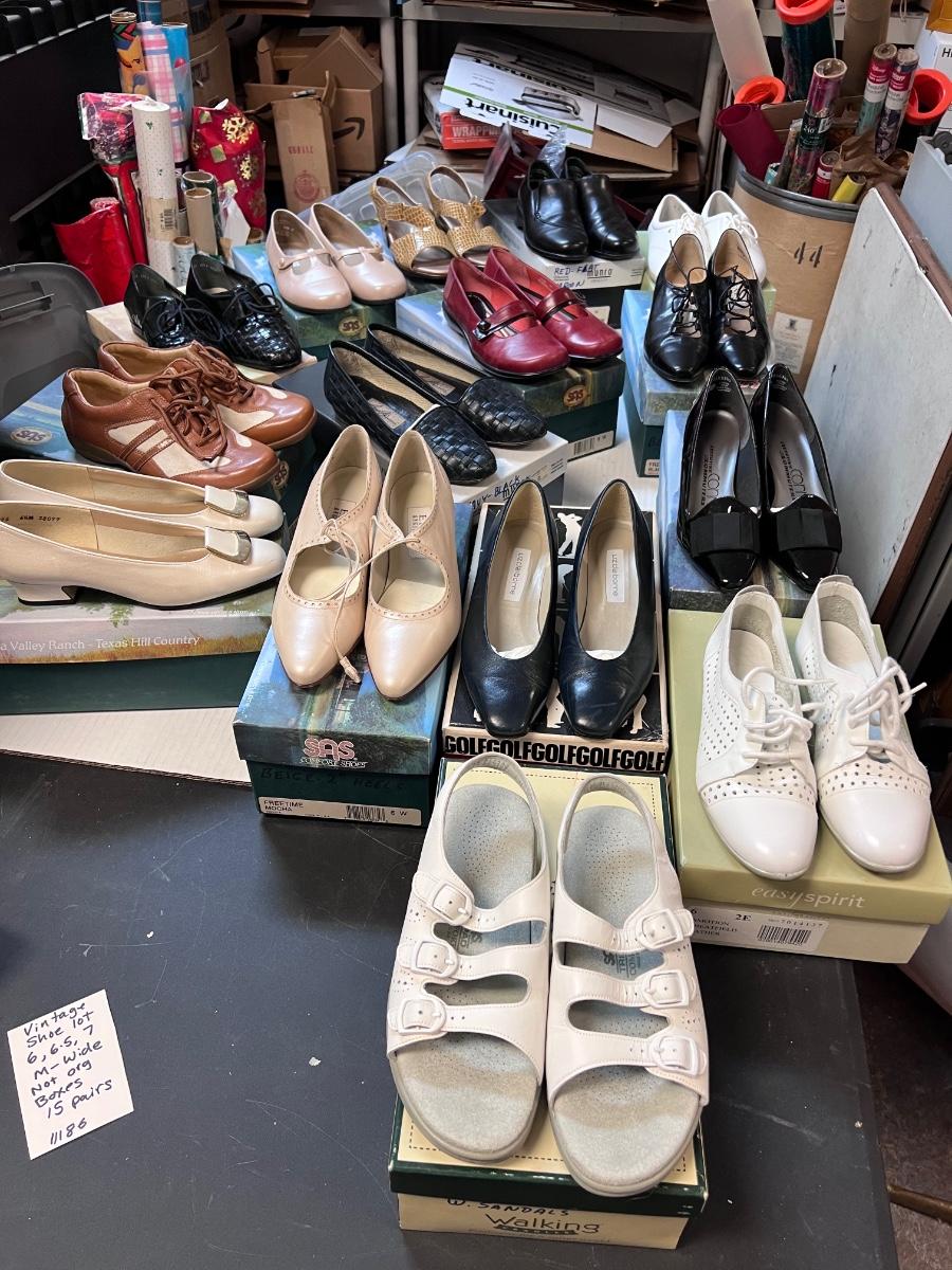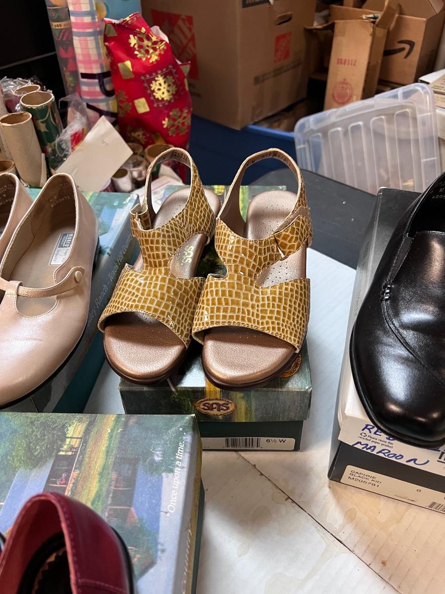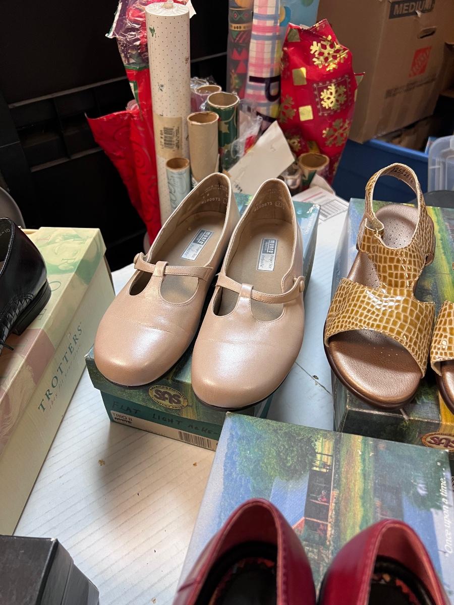Some new some lightly worn all with boxes, some boxes not original. SAS, Clark’s, pumps. Sandals. Probably not worth shipping as there are 2 huge boxes.