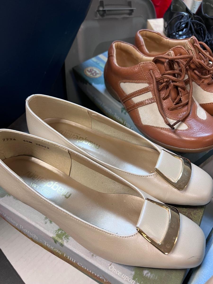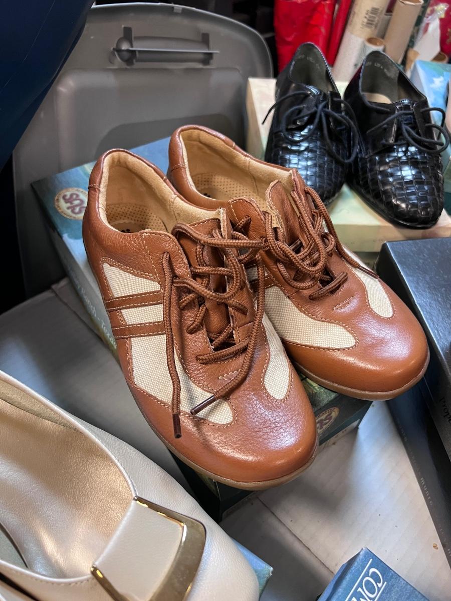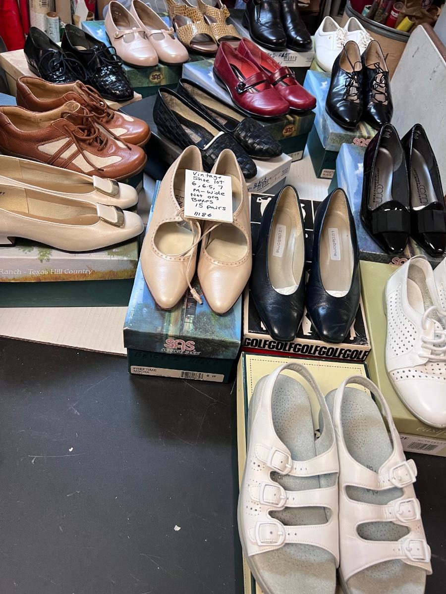 Some new some lightly worn all with boxes, some boxes not original. SAS, Clark’s, pumps. Sandals. Probably not worth shipping as there are 2 huge boxes.