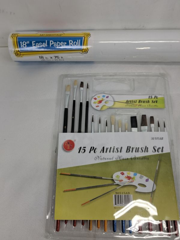 15 Pc Artist Brush Set & 18" Easel Paper Roll - New