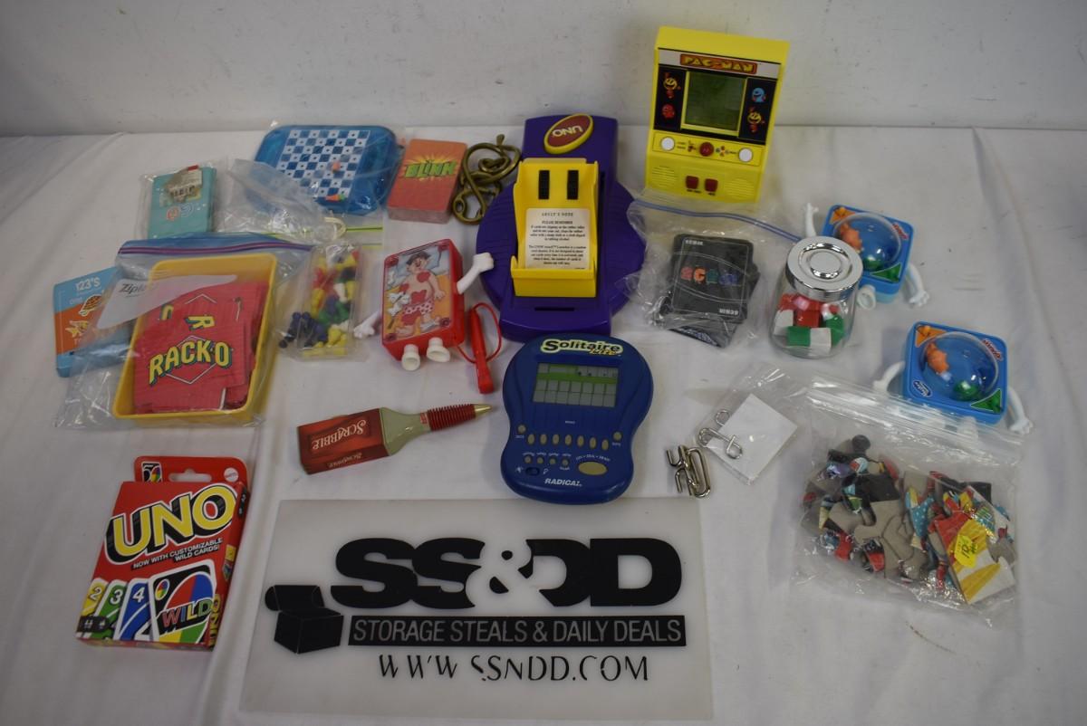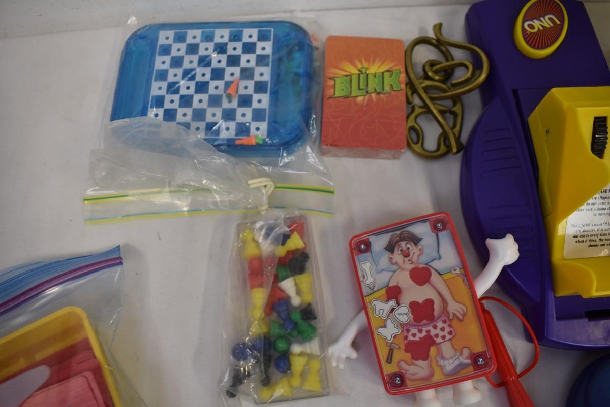 15+ pc Games and Puzzles, Uno, Pac-Man, Blink, Mini Chess, Rack-o