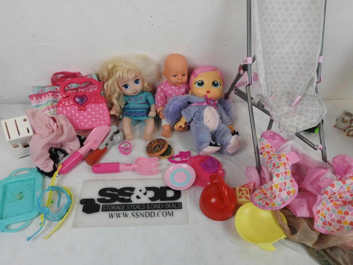 15 pc Kids Toys: Doll Stroller, 3 Dolls, Plates