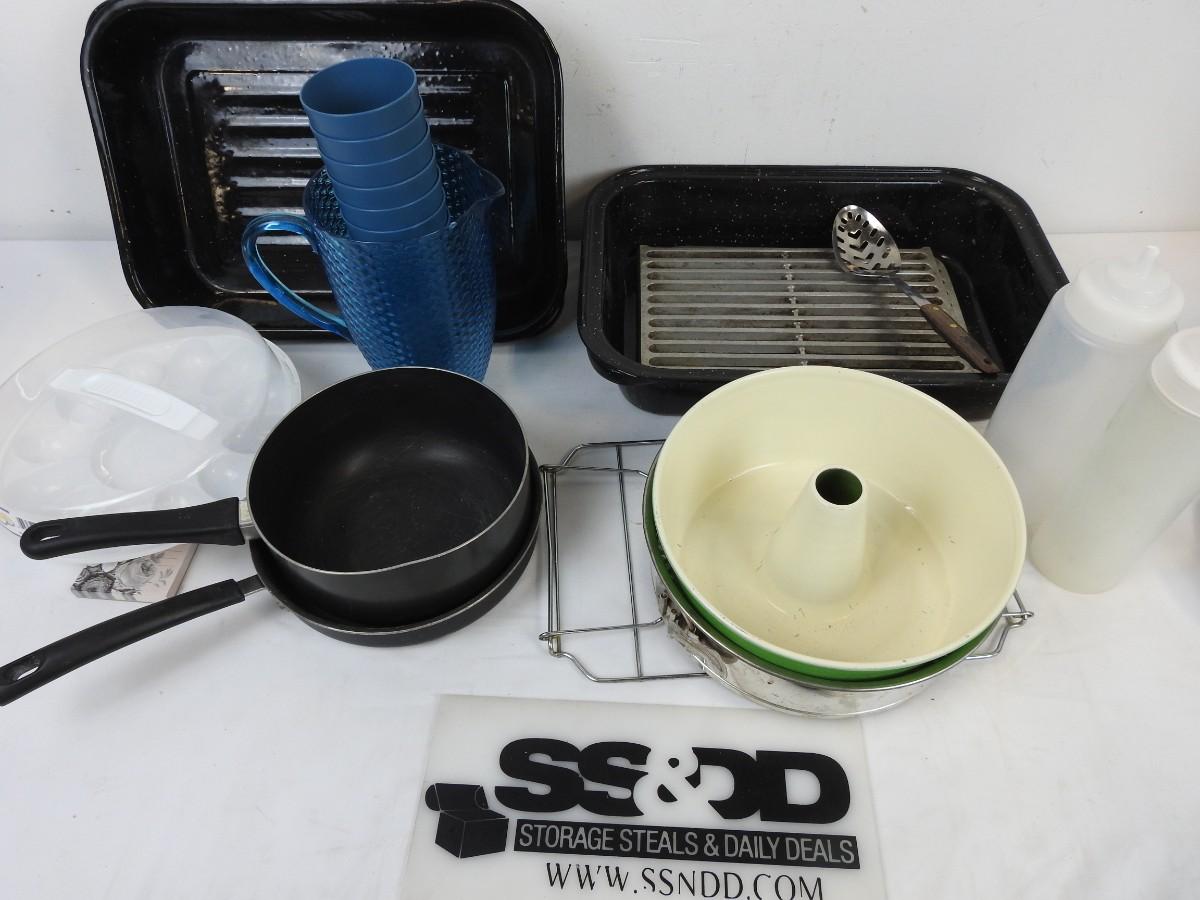 15 pc Kitchen, Roasting Pan, Pots and Pans, Plastic Cups
