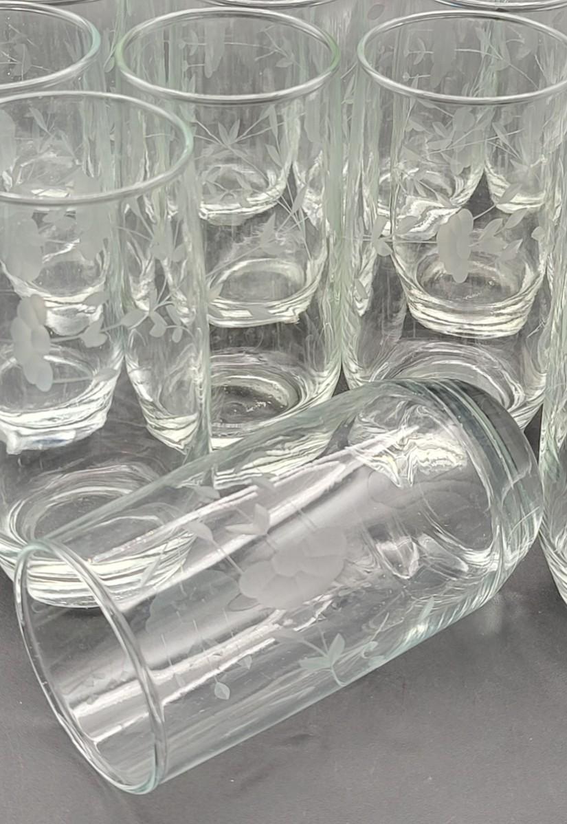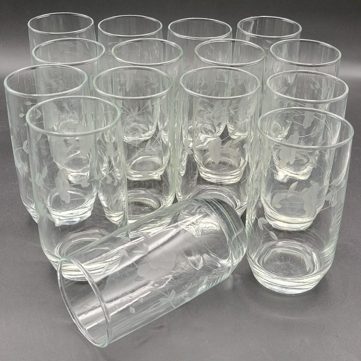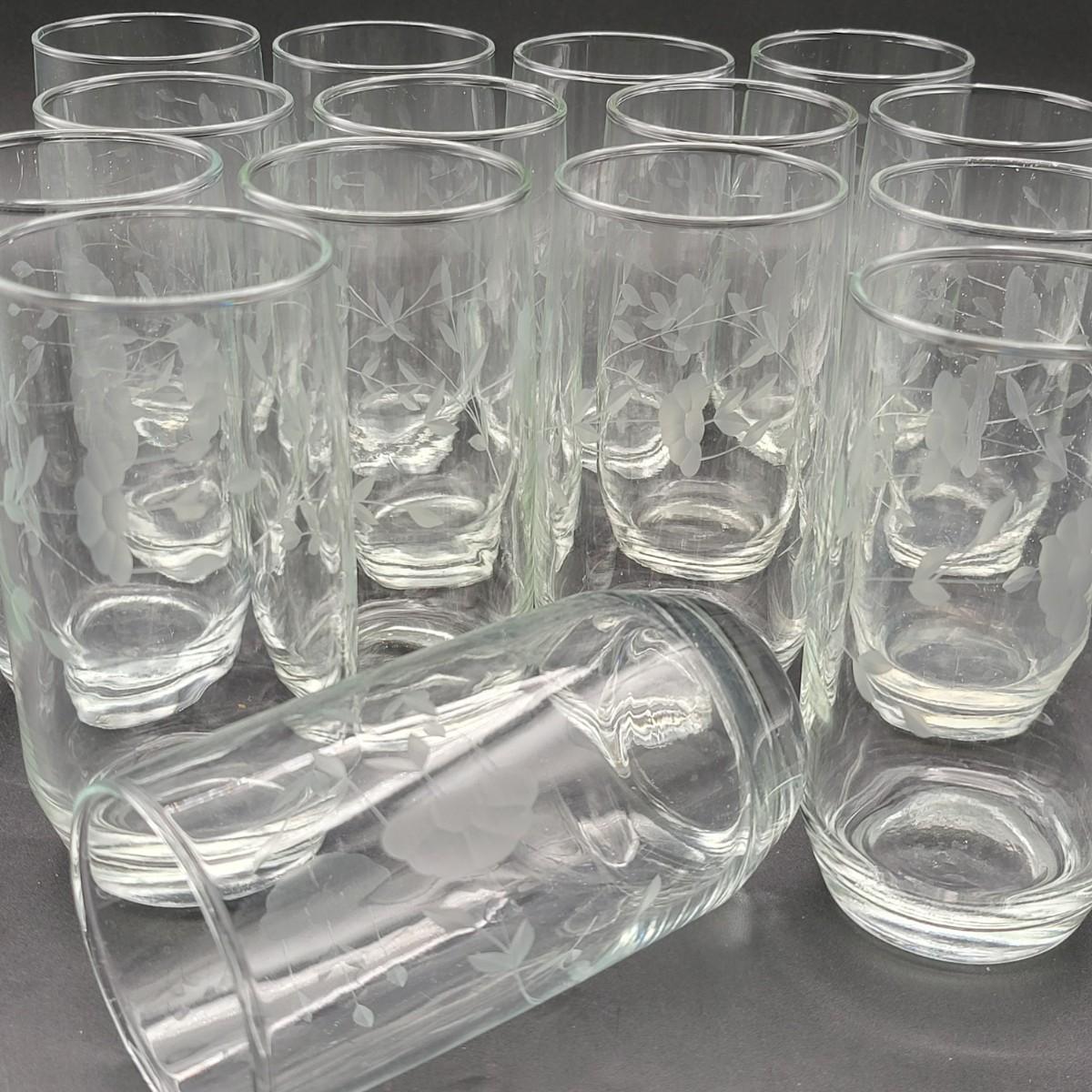 15 - 5" etched Heritage floral pattern tumblers 12oz. Princess House. No chips to any of them.