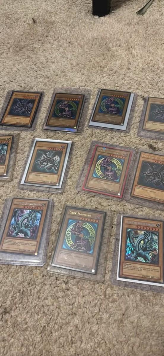 15 holo cards. See photos. These yugioh holo cards are old and from early sets. Dark Magicians and Red Eyes B Dragons and 3 blue eyes white dragon cards too. Shipping only. Thanks! Cards are in lightly played condition mostly. No more pics will be added. Zoom in if you must. SHIPPING ONLY. FREE SHIPPING.