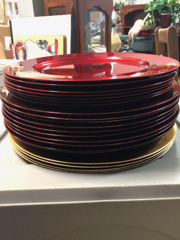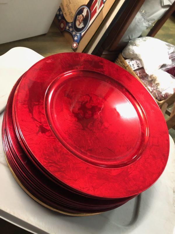 15 Red Chargers (Gold chargers at bottom of stack in photo are NOT included. They have their own listing.)