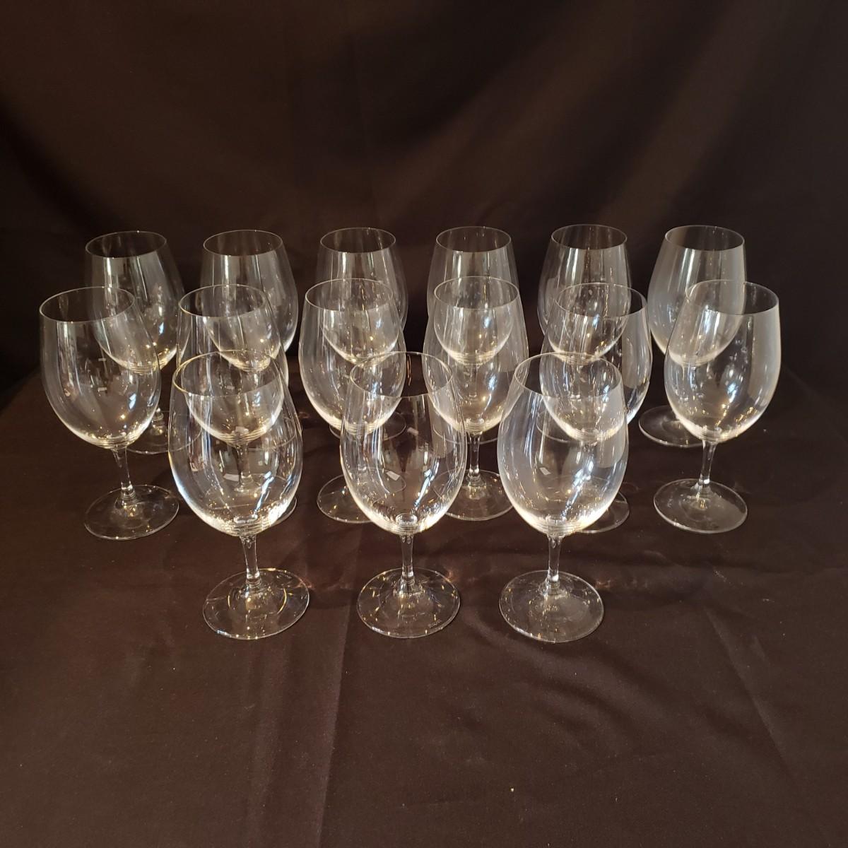 This is 15 Reidel clear wine glasses. The glasses measure 3" x 8"H. Just in time for the holidays! All glasses appear to be blemish free.