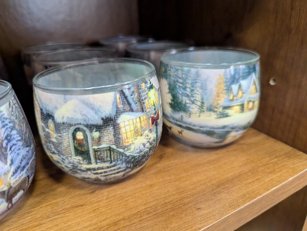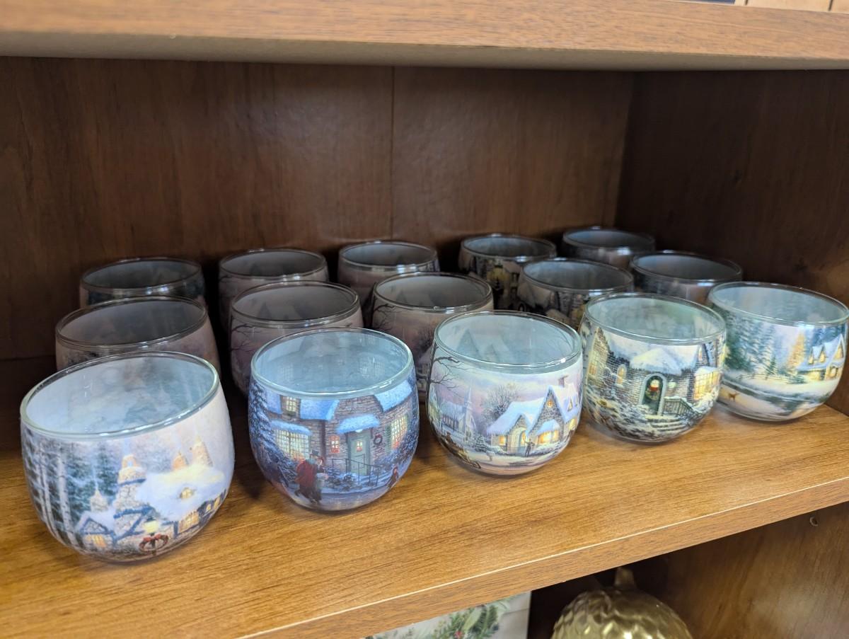15 - Thomas Kinkade Winter Scene Candle Holders (LR)